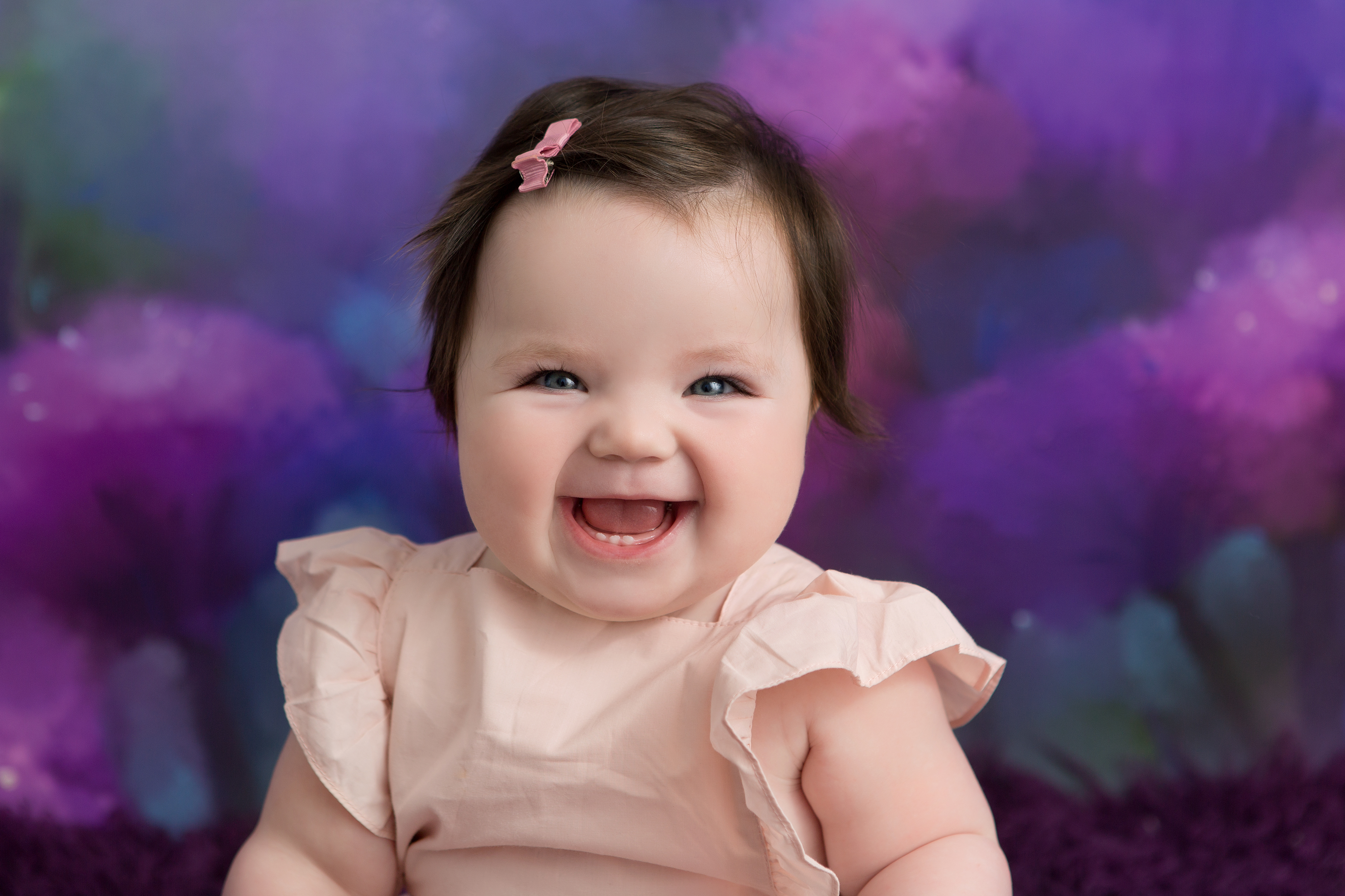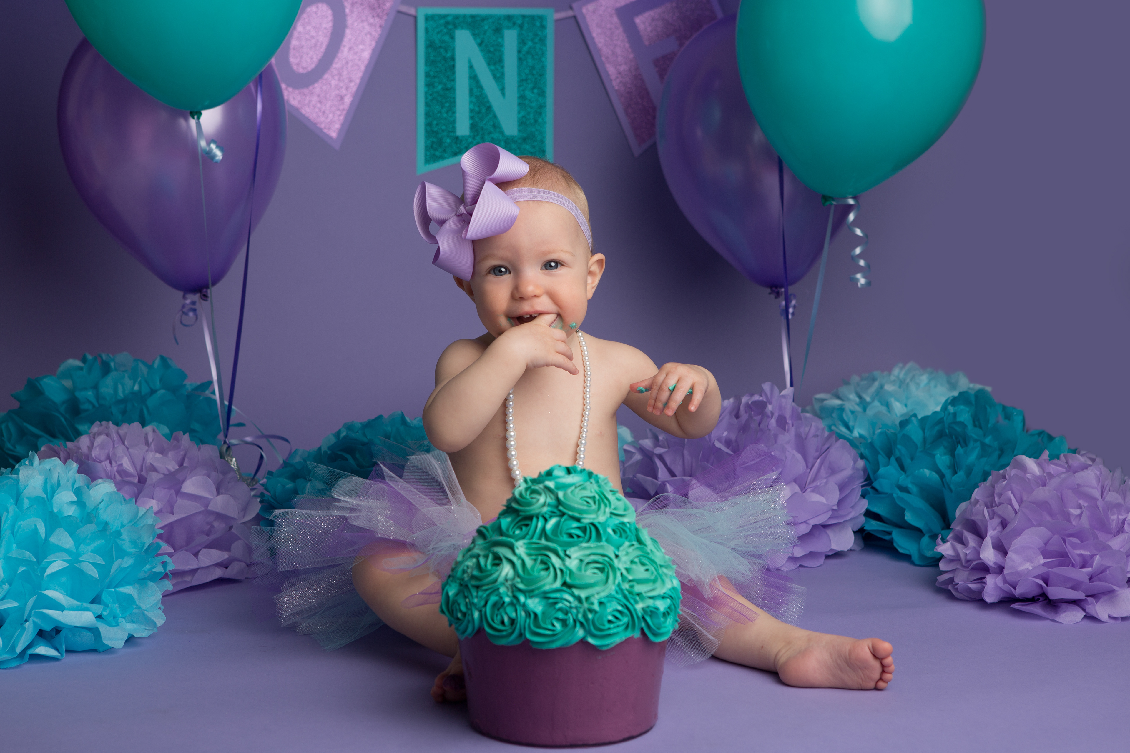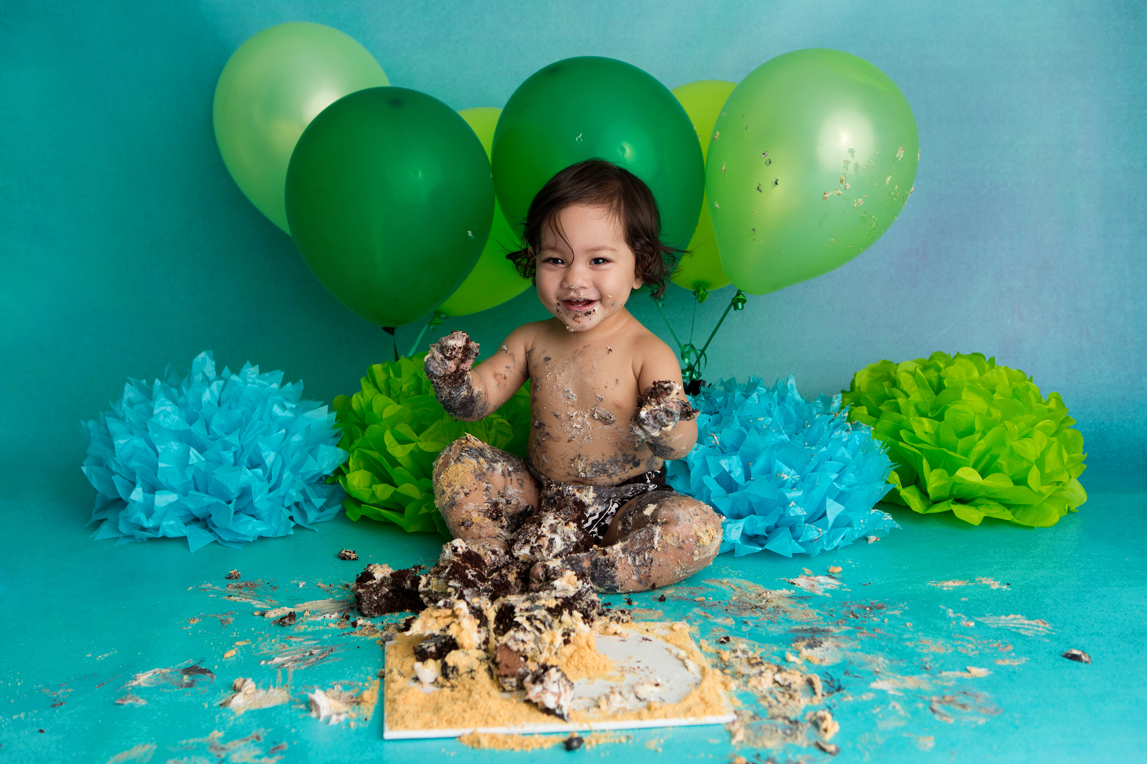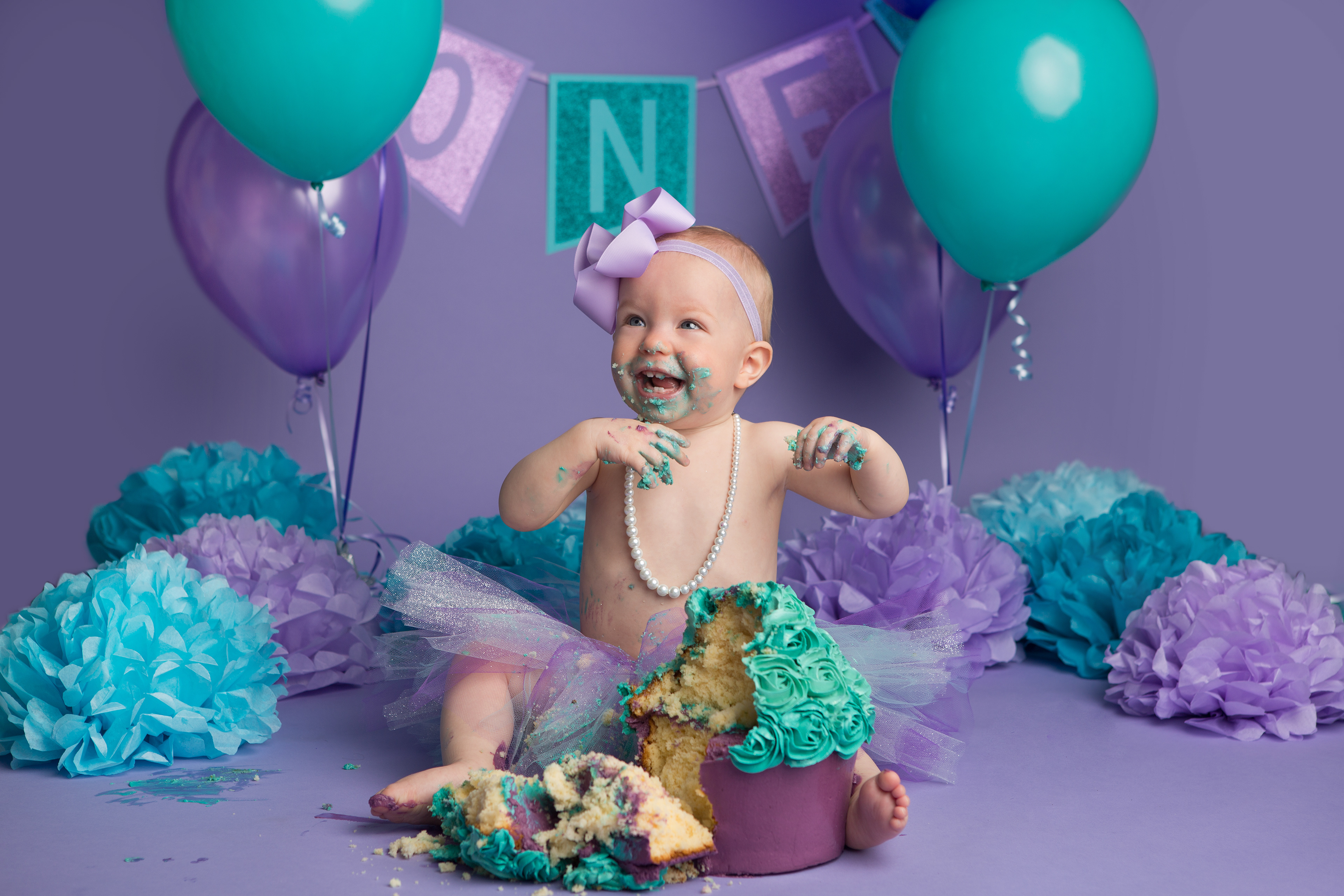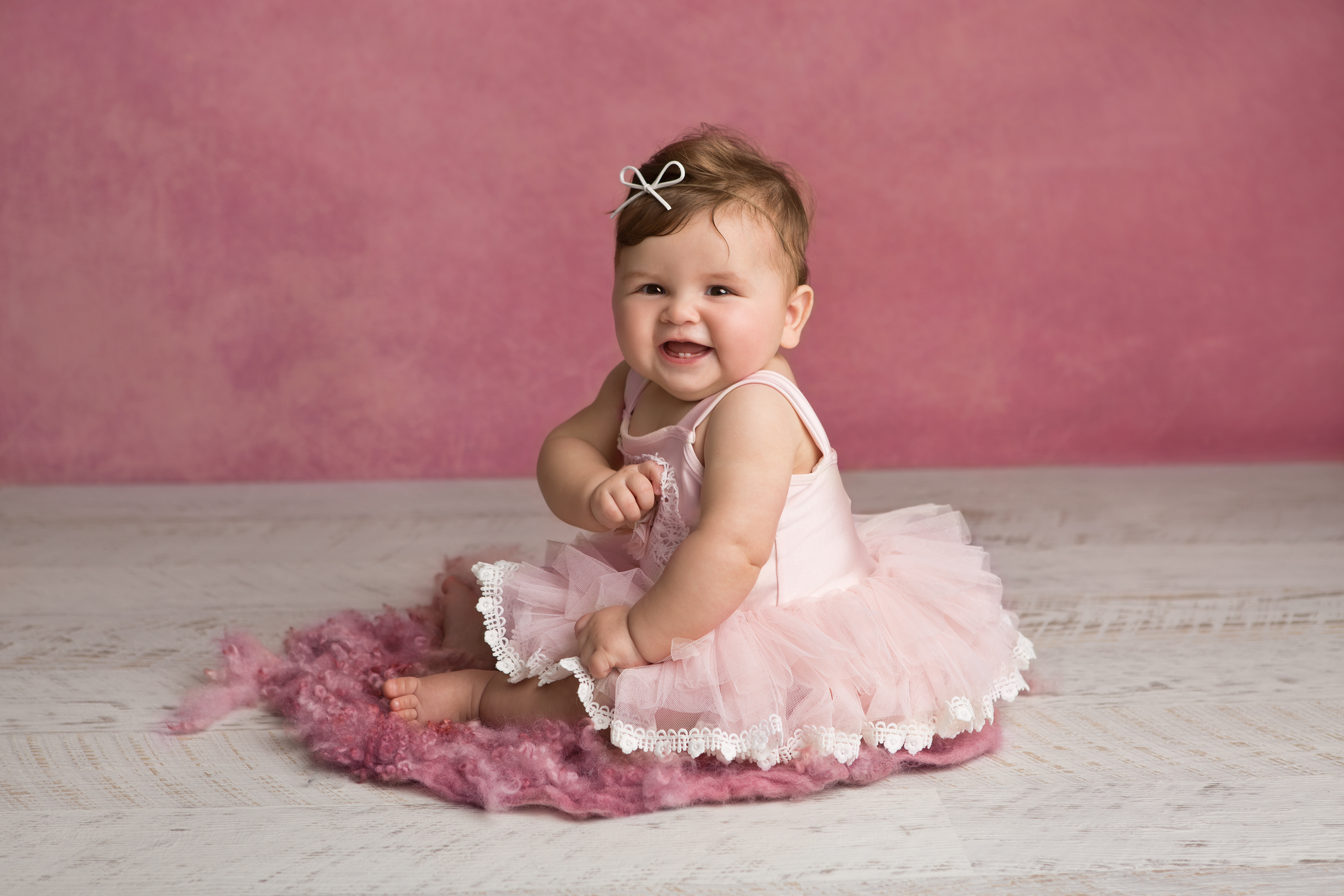 So much changes in that first year! Sitter age (6-9 months) is a perfect time for smiles and joy. 1 year Birthday milestone sessions are adorable, just more hectic as they are now crawling or walking! That is why the cake and bath are awesome distractions and so much fun. Family/sibling poses included!