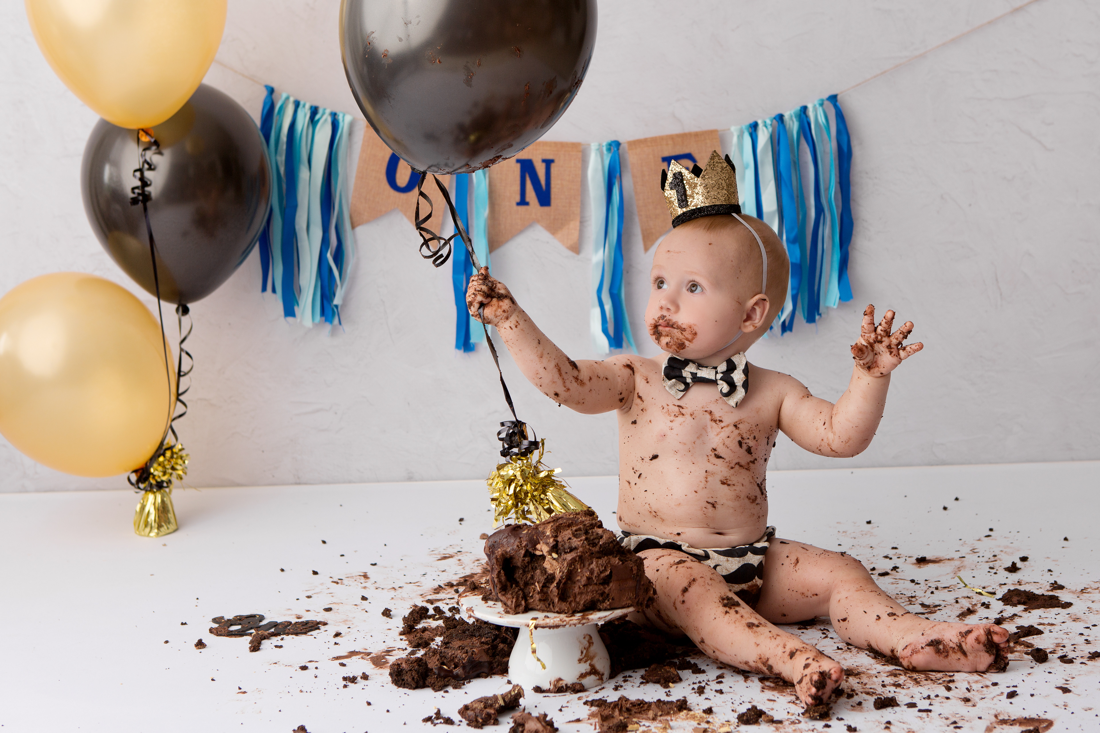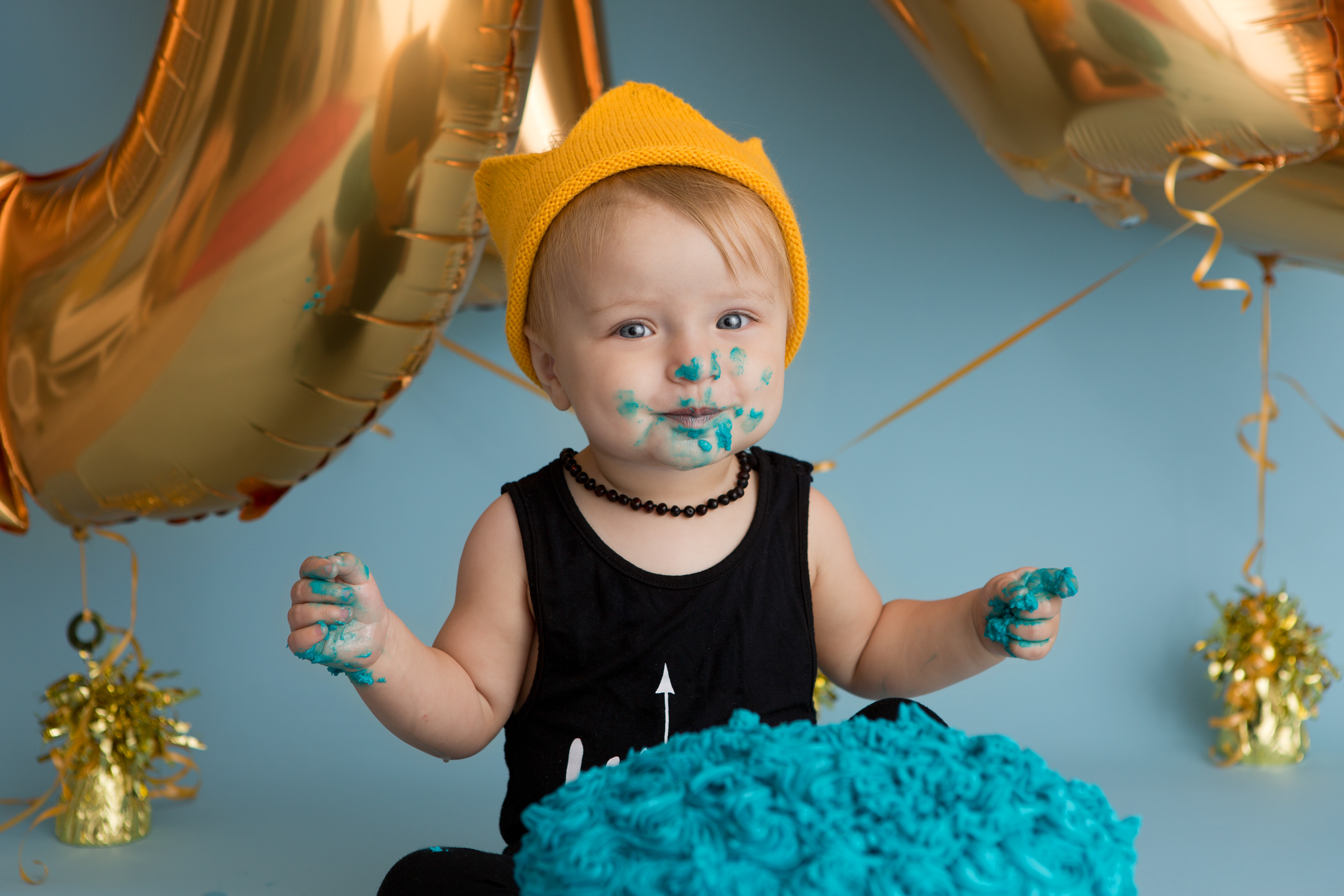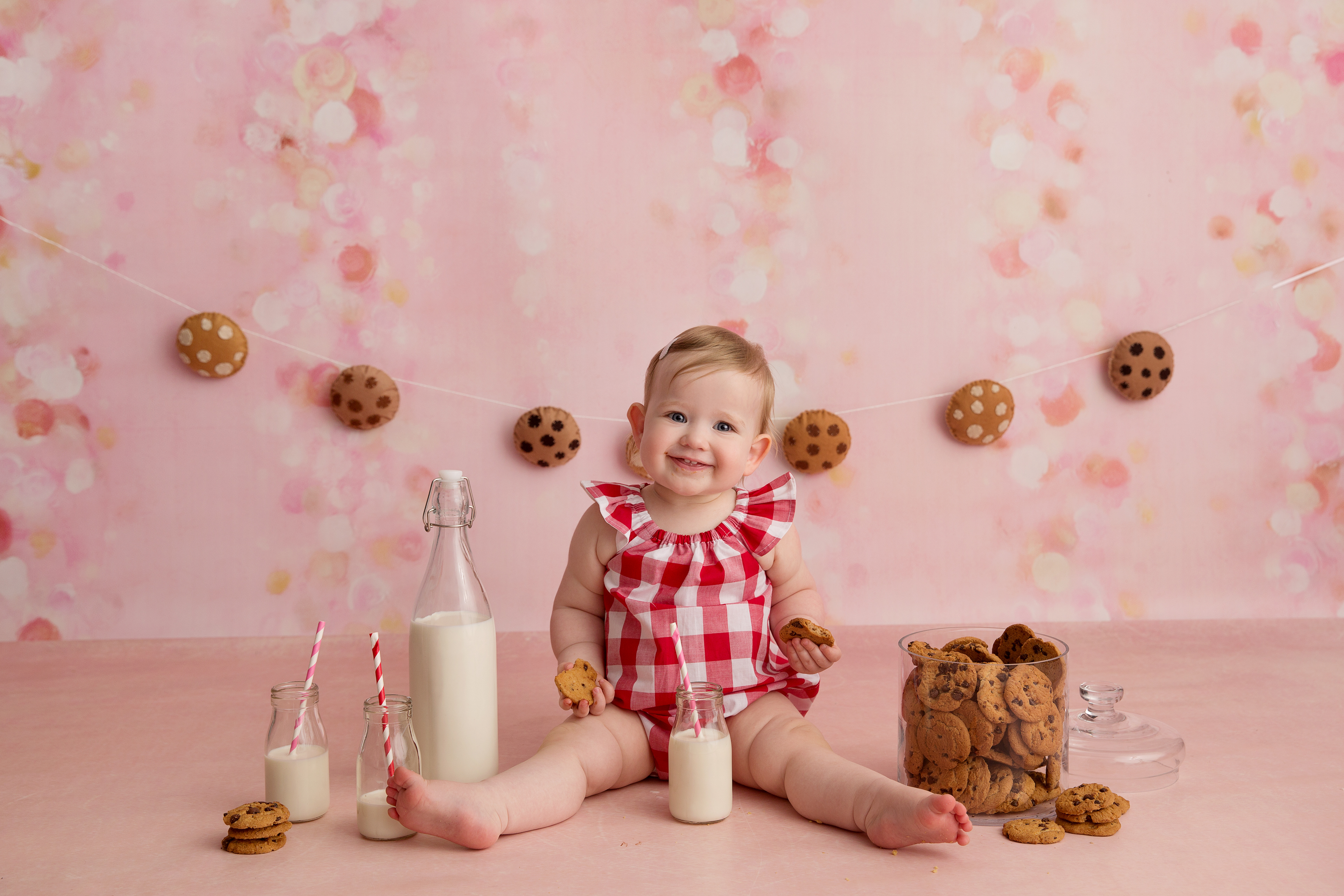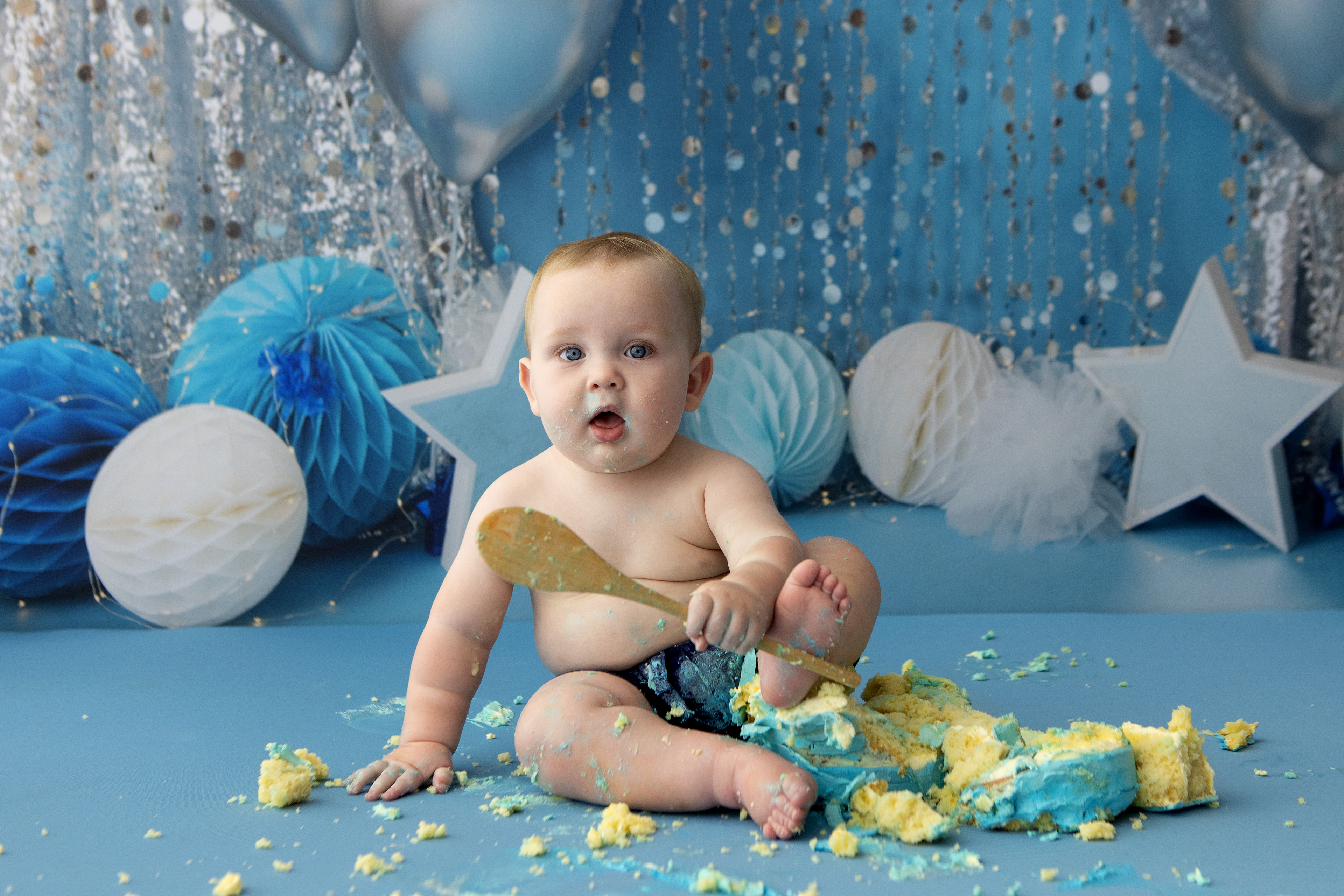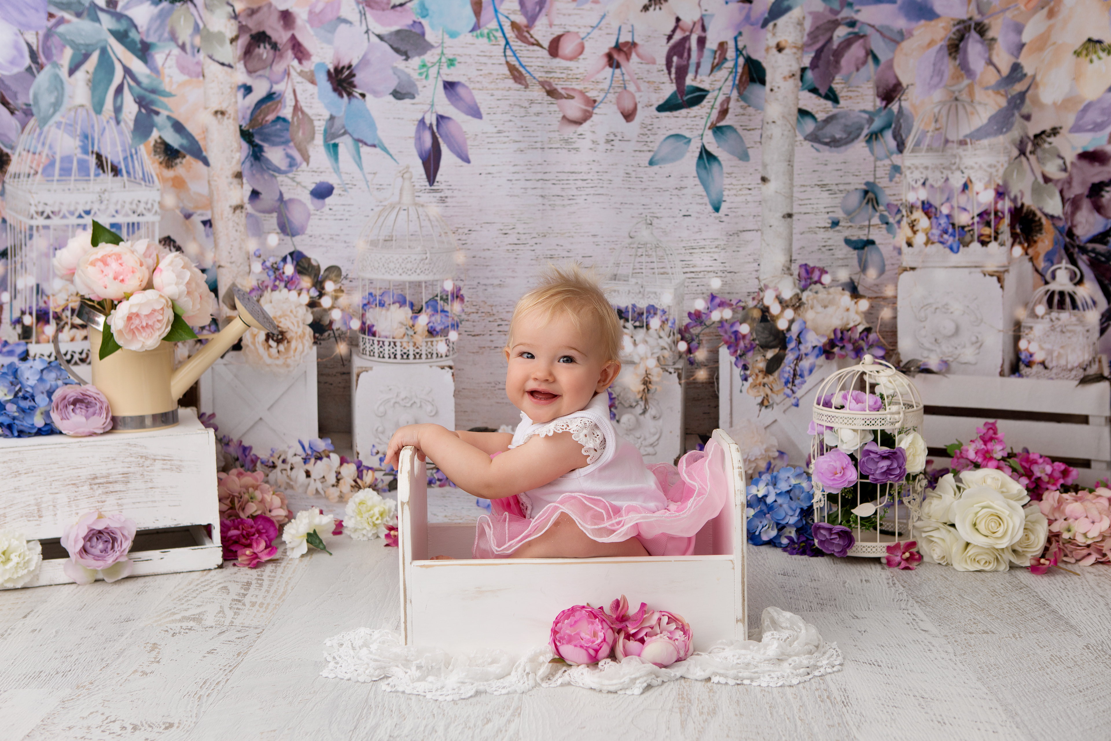 So much changes in that first year! Sitter age (6-9 months) is a perfect time for smiles and joy. 1 year Birthday milestone sessions are adorable, just more hectic as they are now crawling or walking! That is why the cake and bath are awesome distractions and so much fun. Family/sibling poses included!