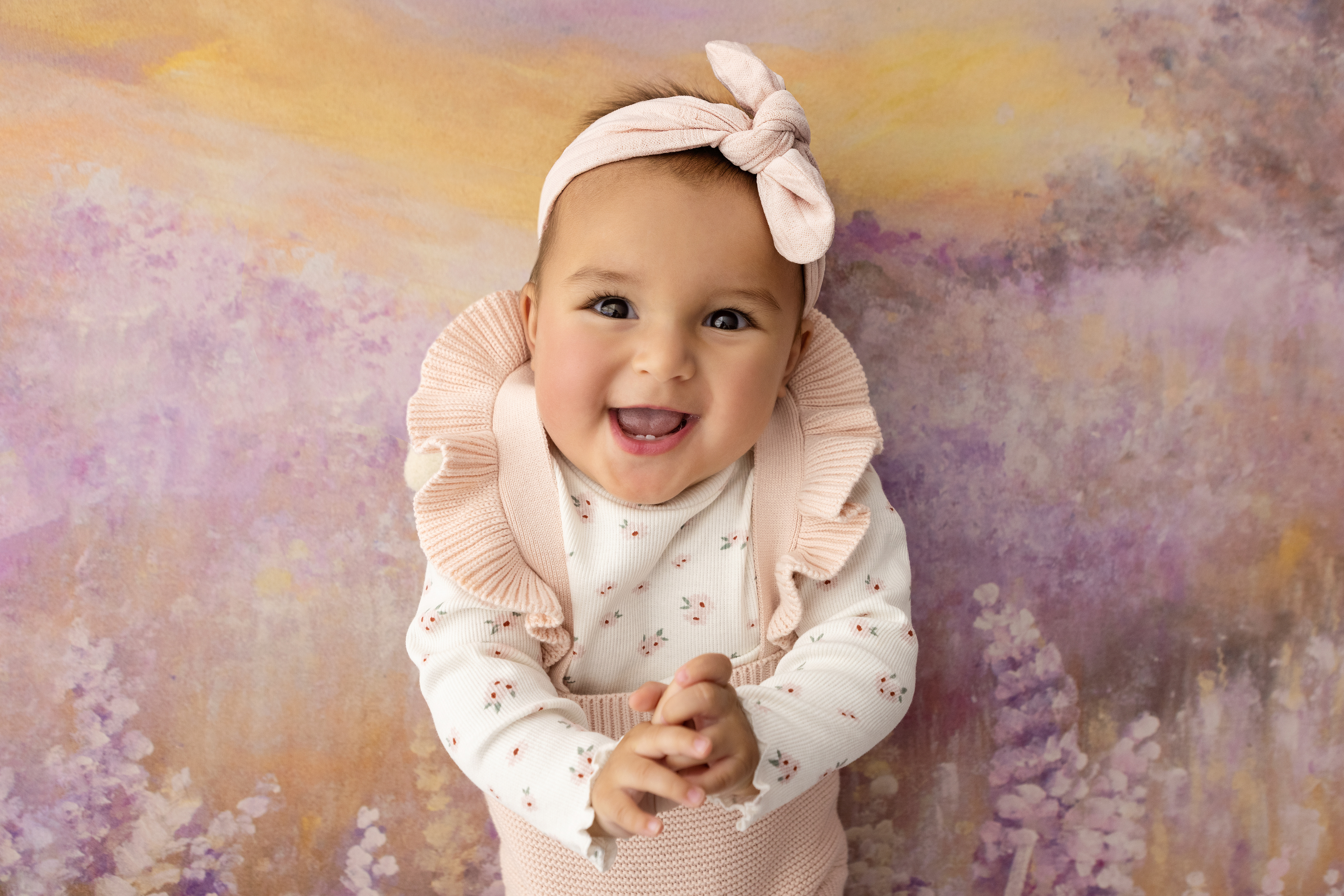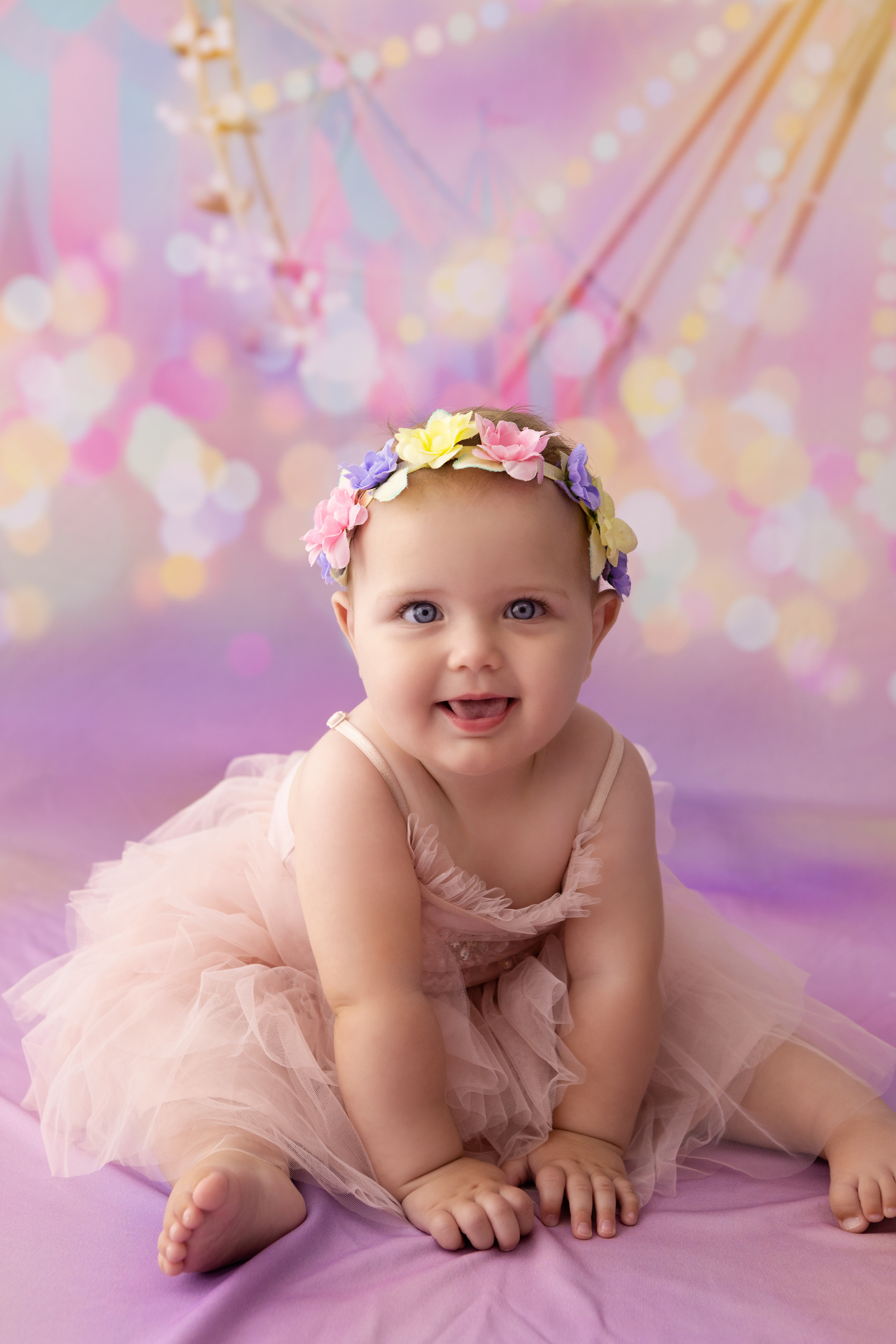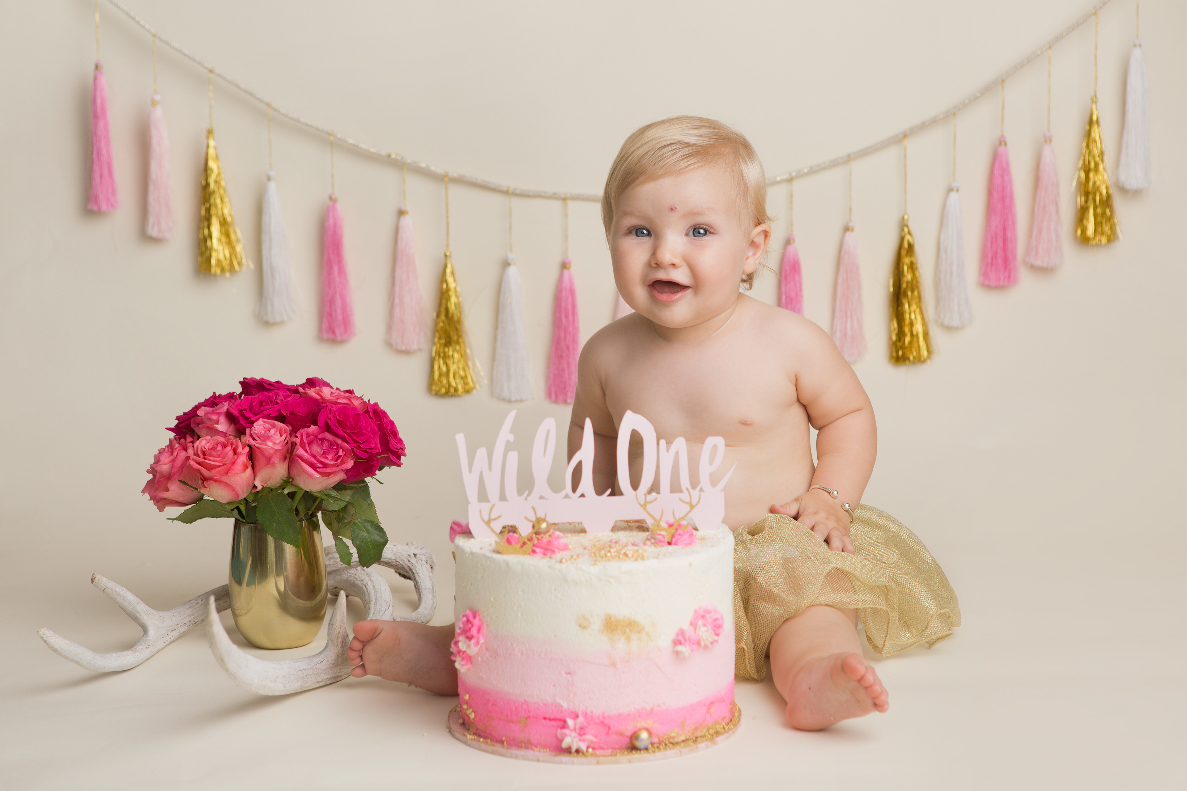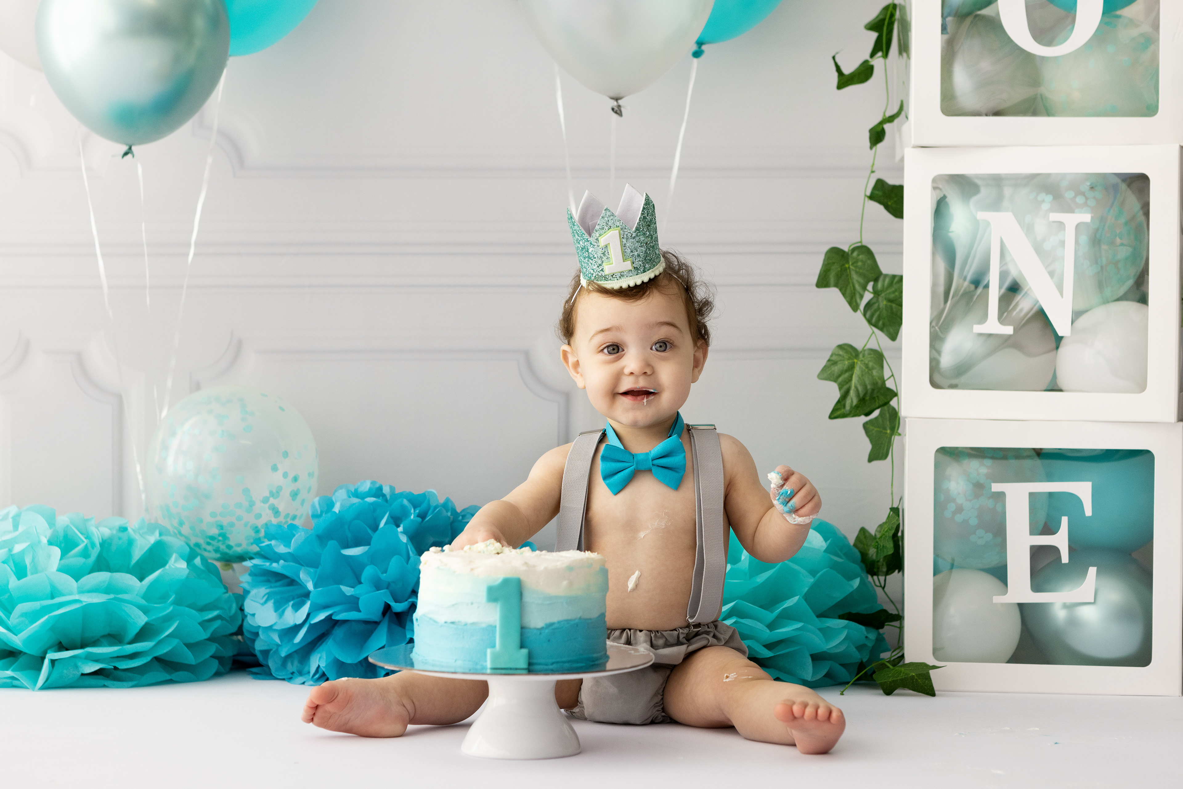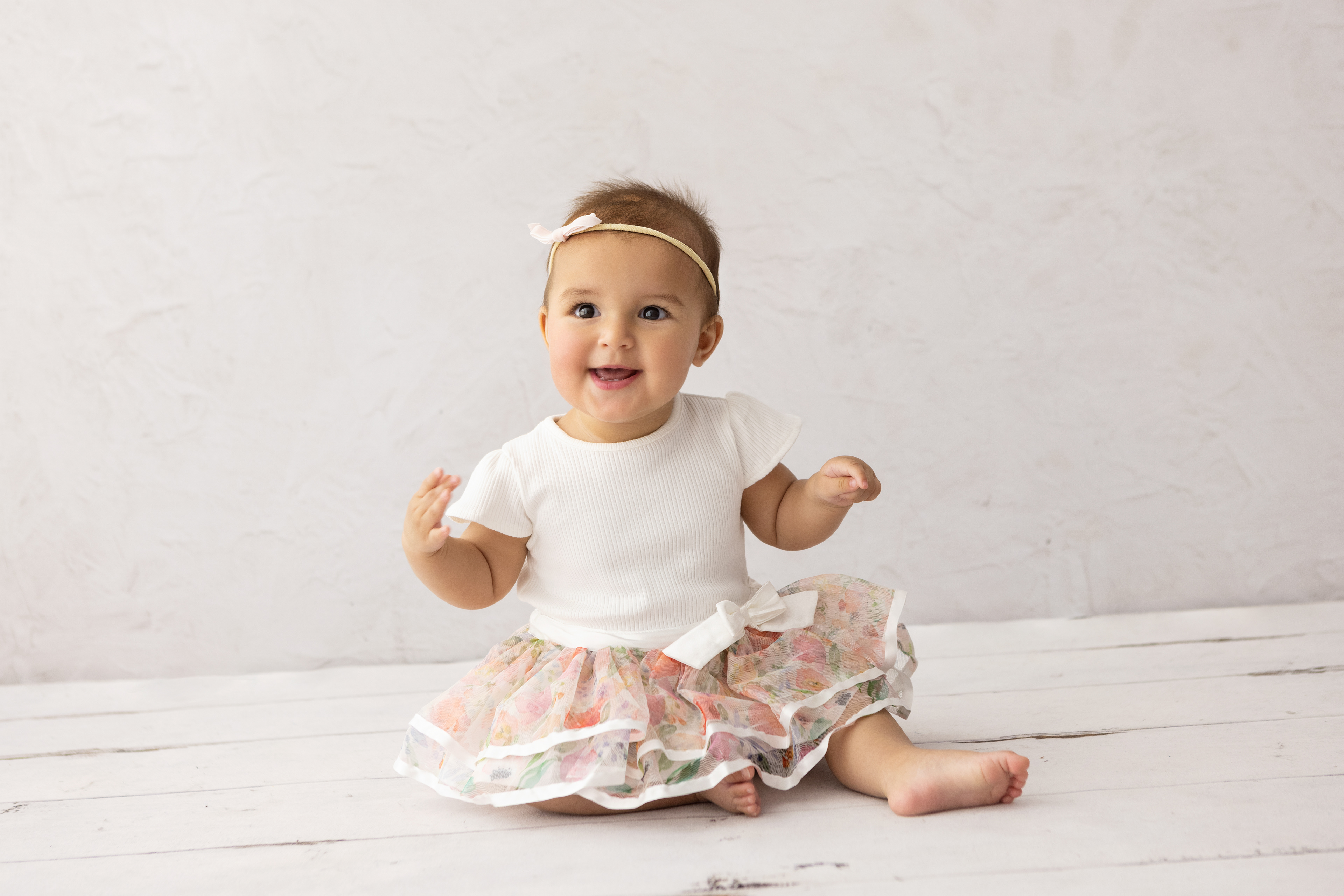 So much changes in that first year! Sitter age (6-9 months) is a perfect time for smiles and joy. 1 year Birthday milestone sessions are adorable, just more hectic as they are now crawling or walking! That is why the cake and bath are awesome distractions and so much fun. Family/sibling poses included!
