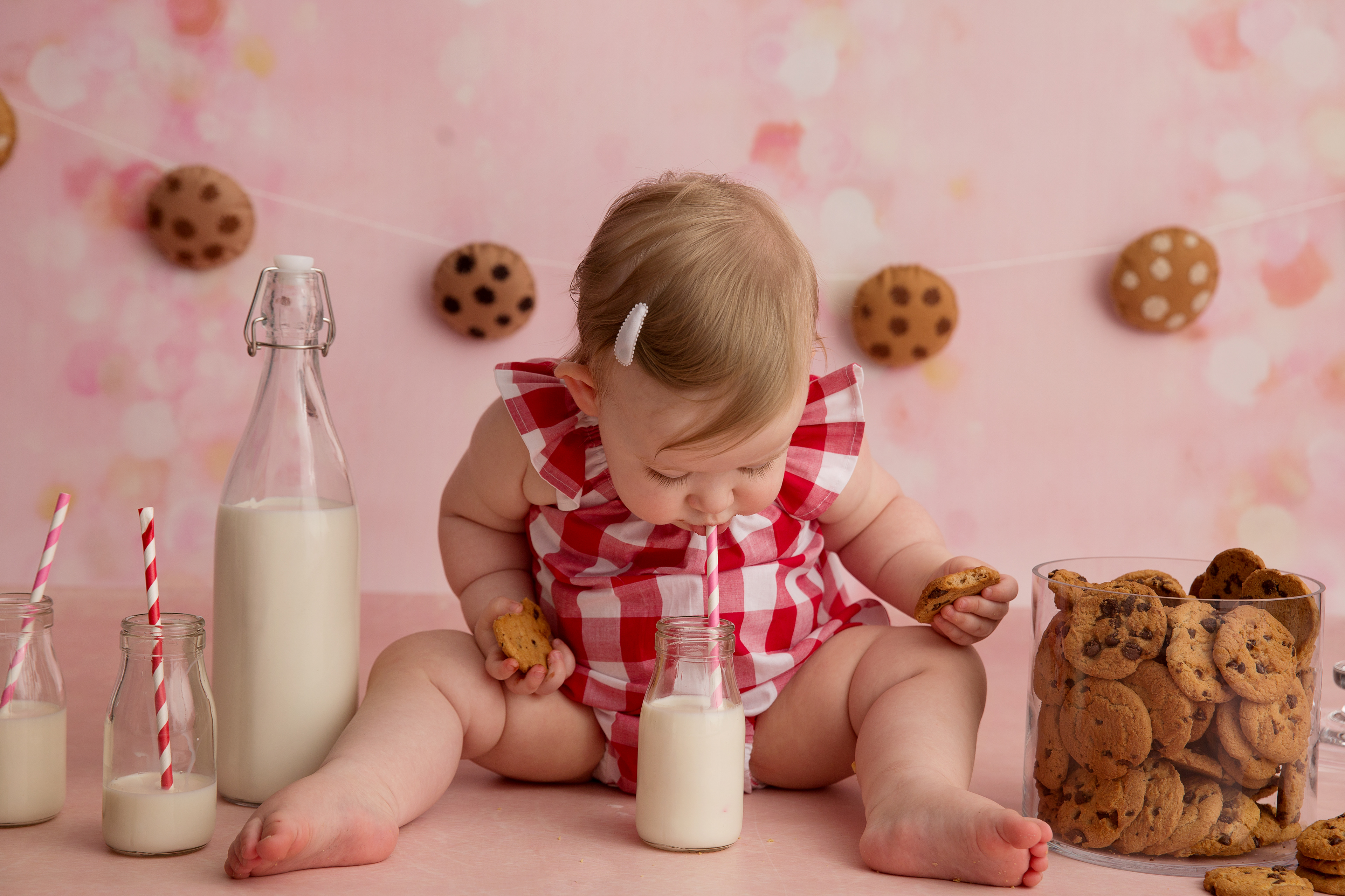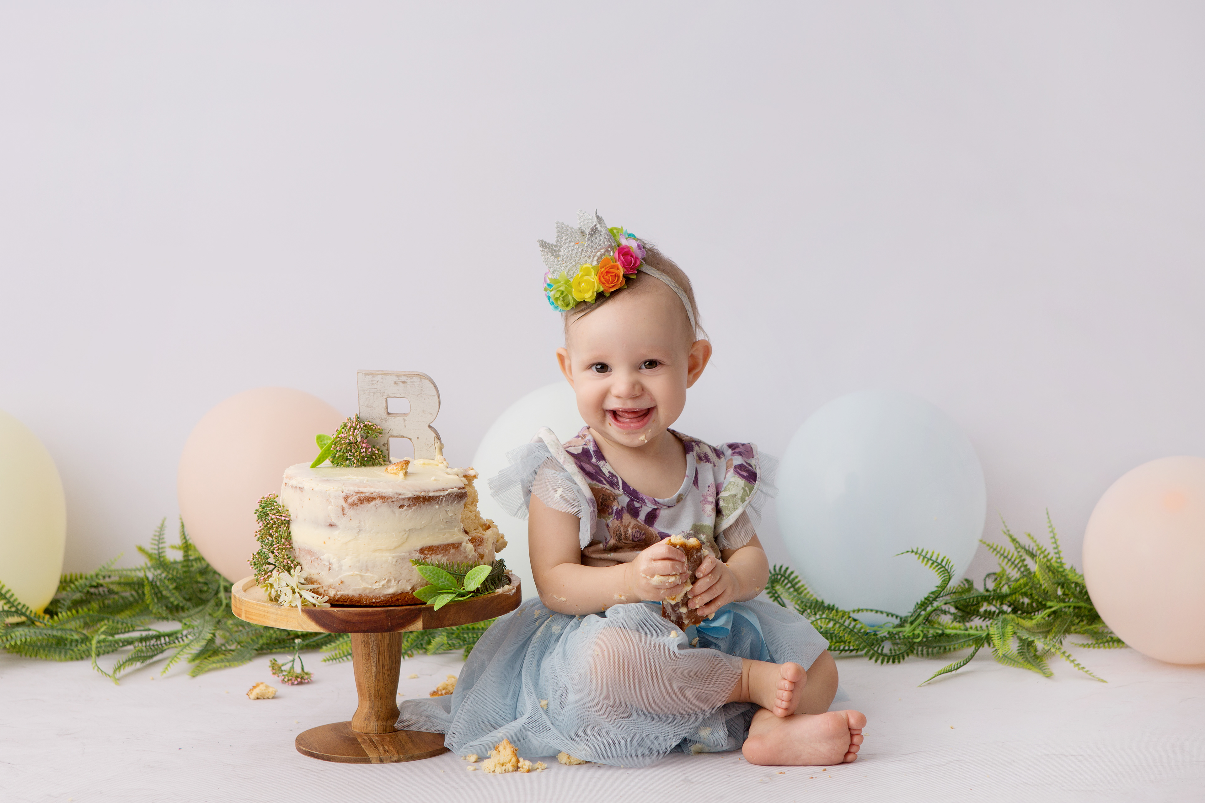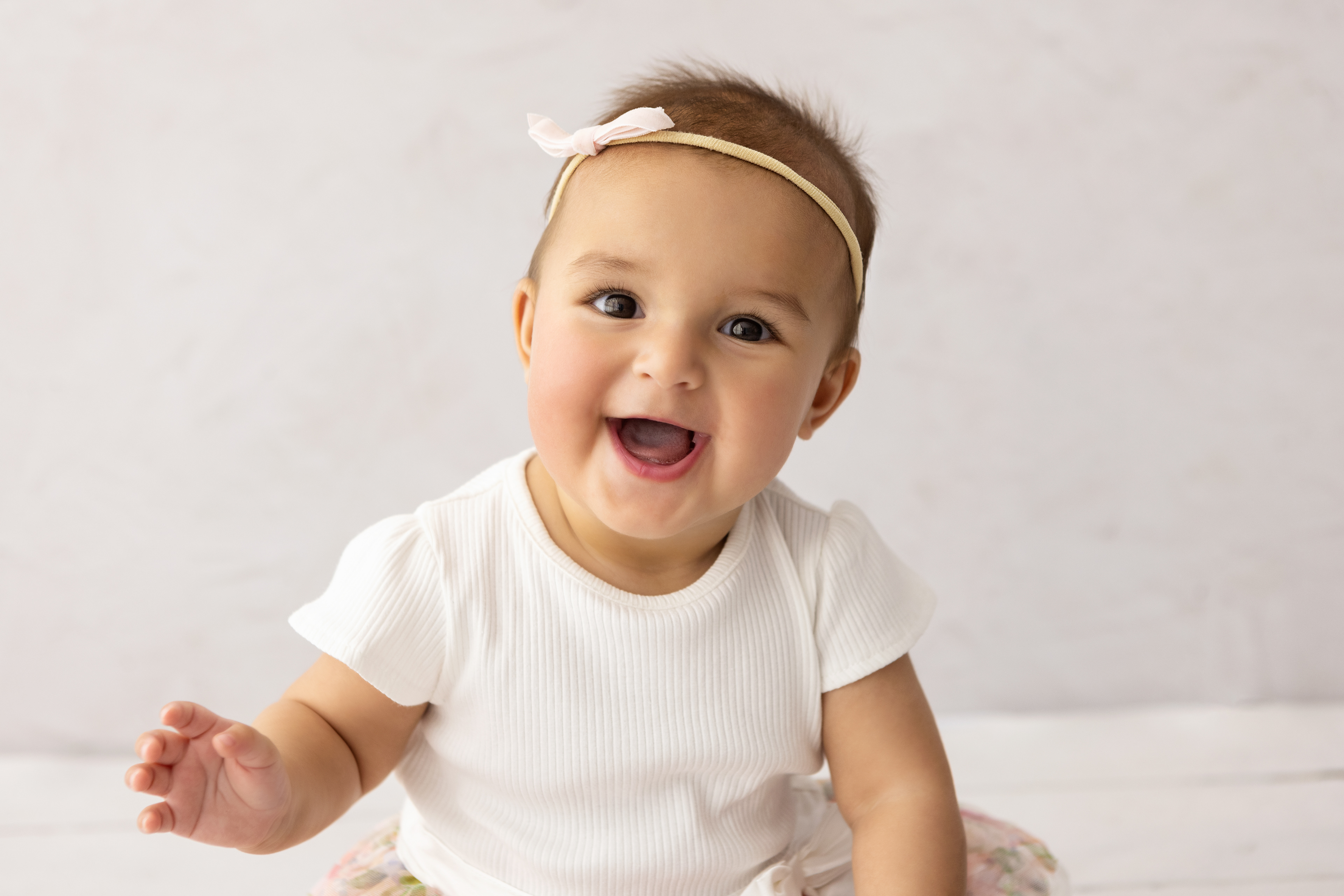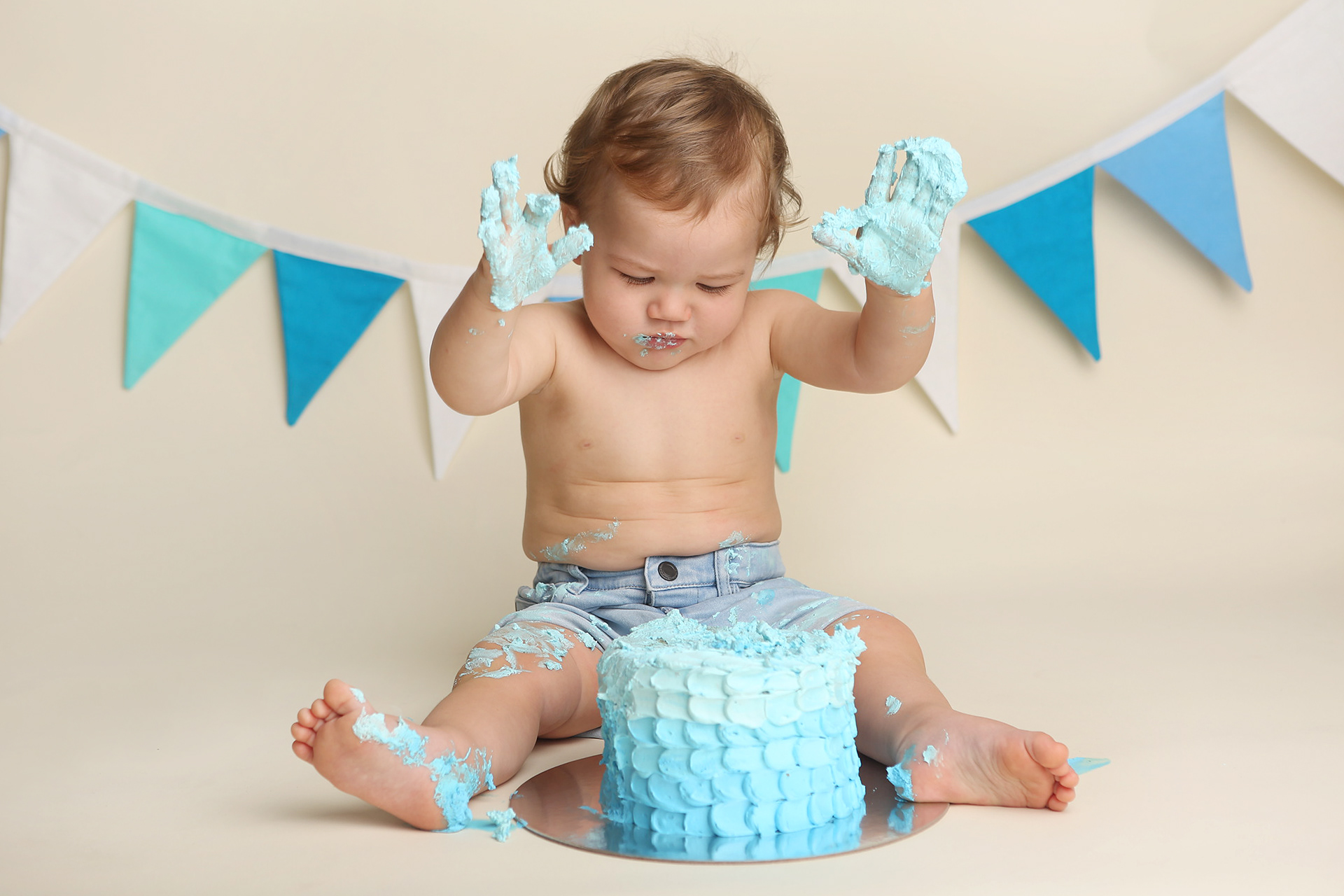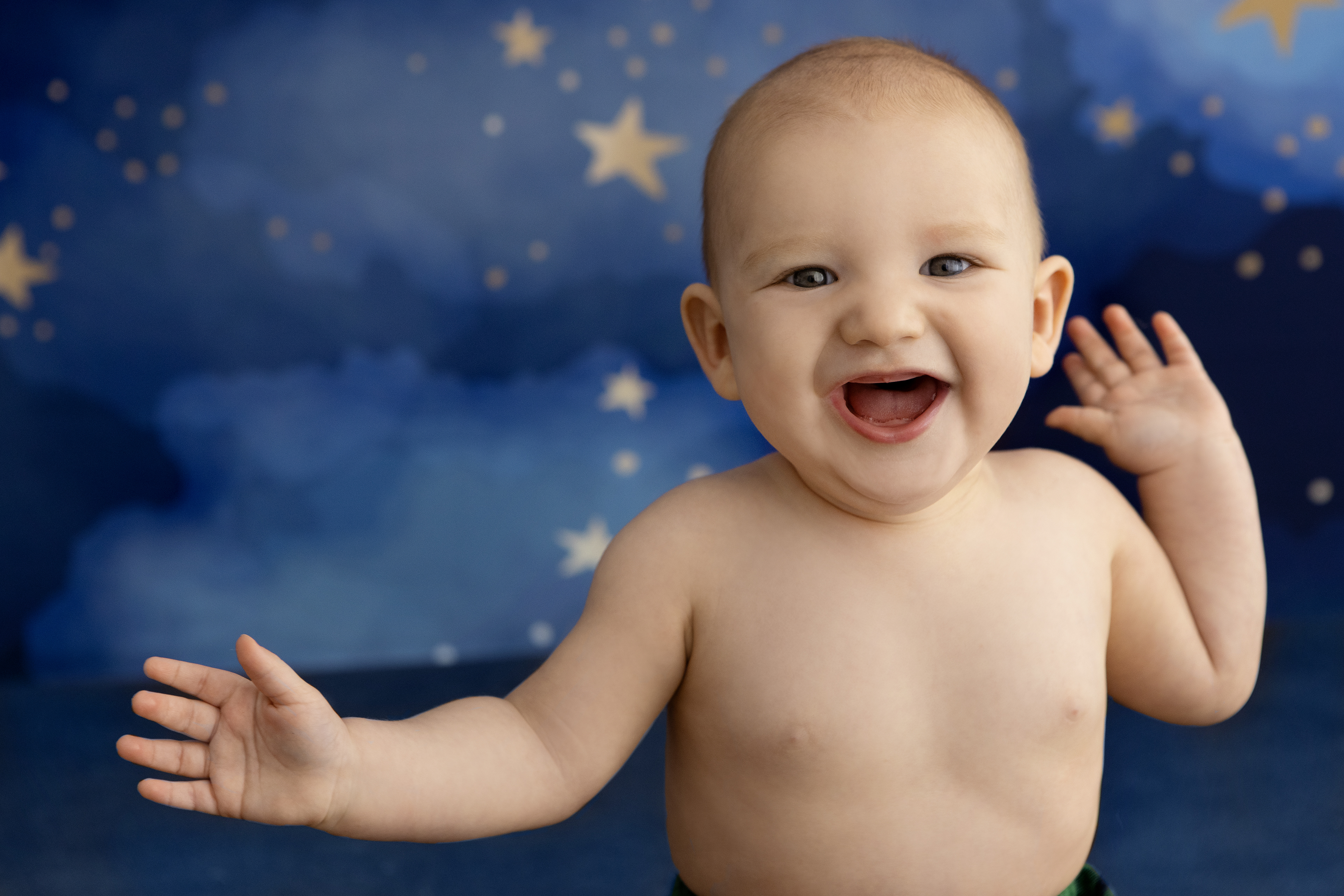 So much changes in that first year! Sitter age (6-9 months) is a perfect time for smiles and joy. 1 year Birthday milestone sessions are adorable, just more hectic as they are now crawling or walking! That is why the cake and bath are awesome distractions and so much fun. Family/sibling poses included!
