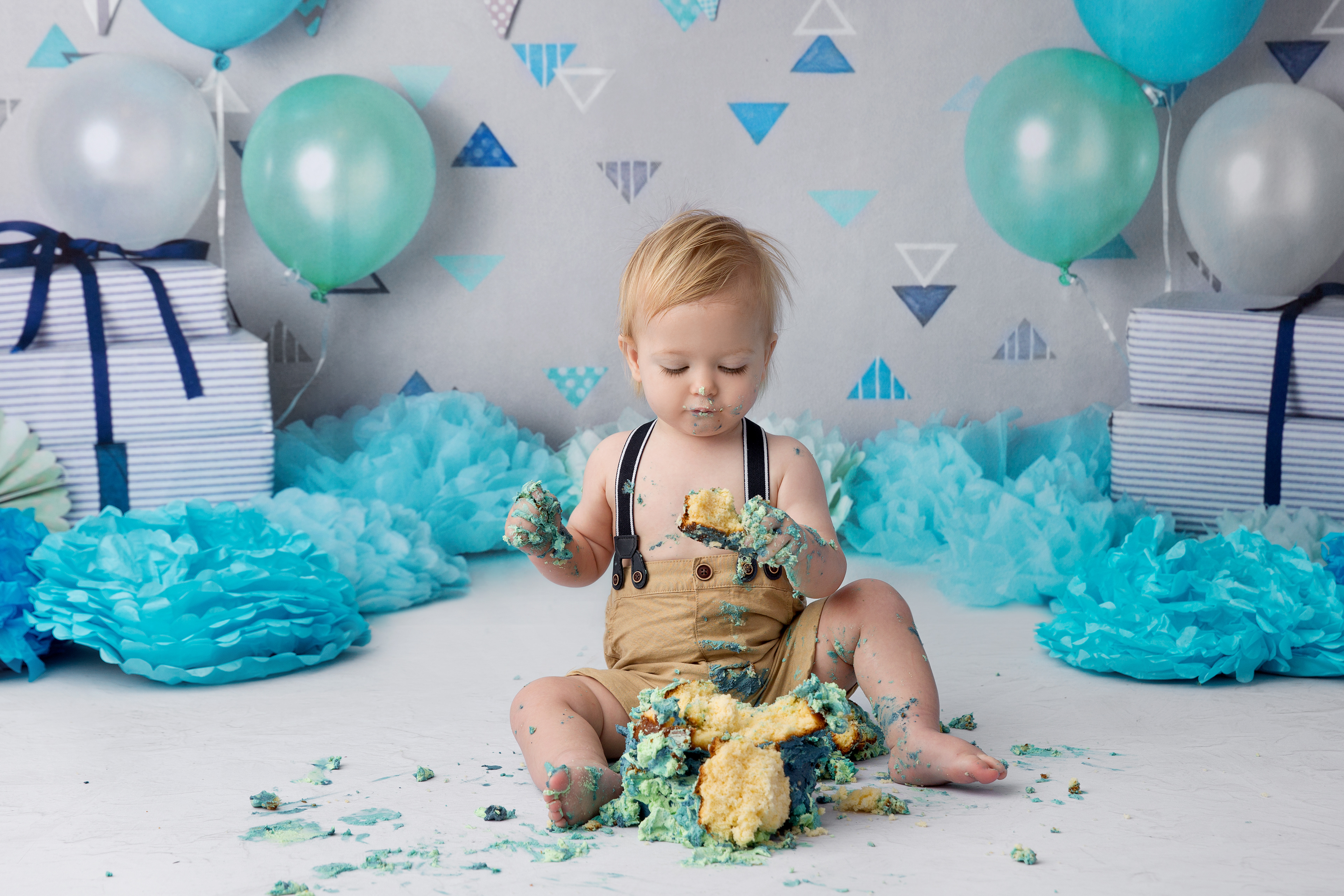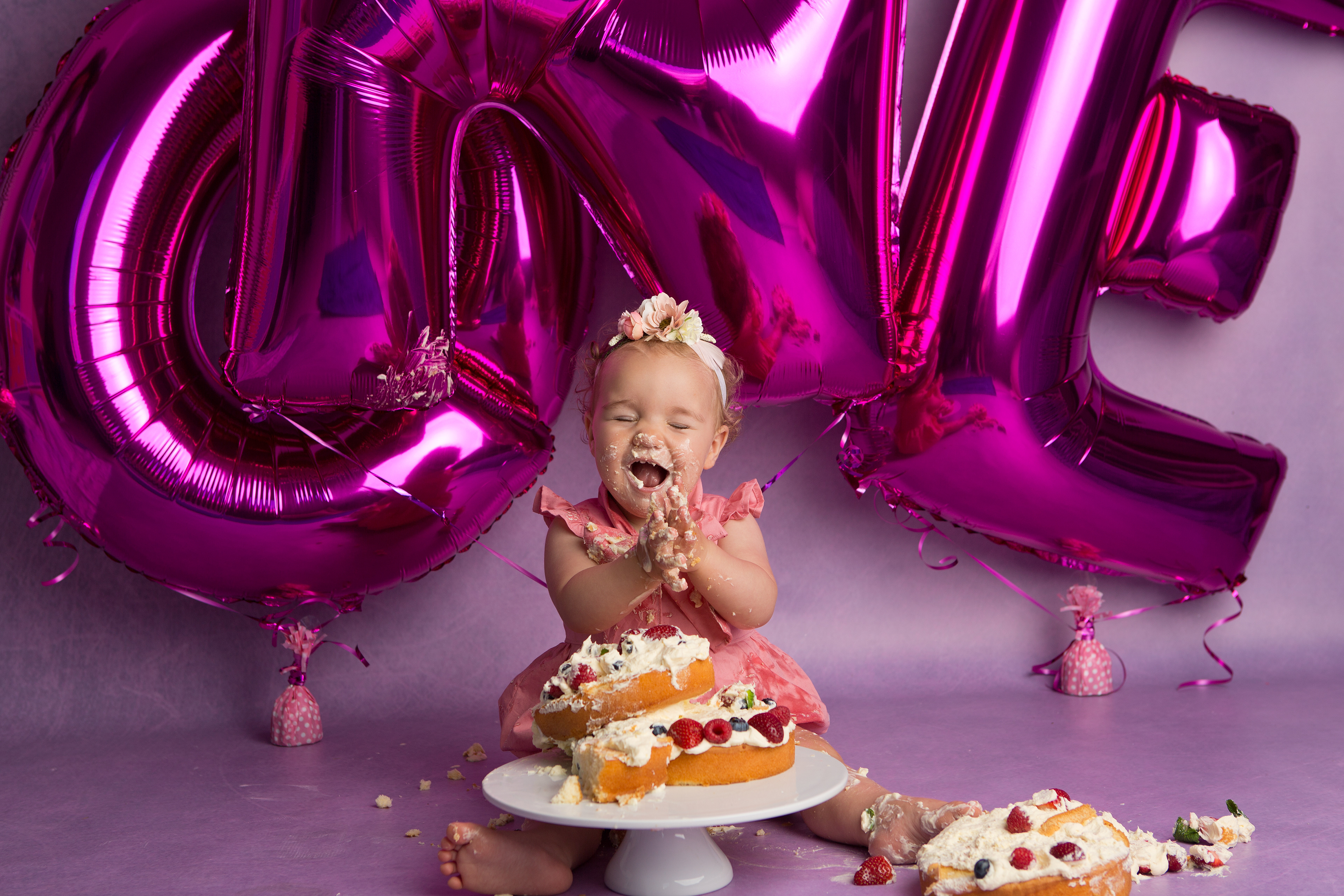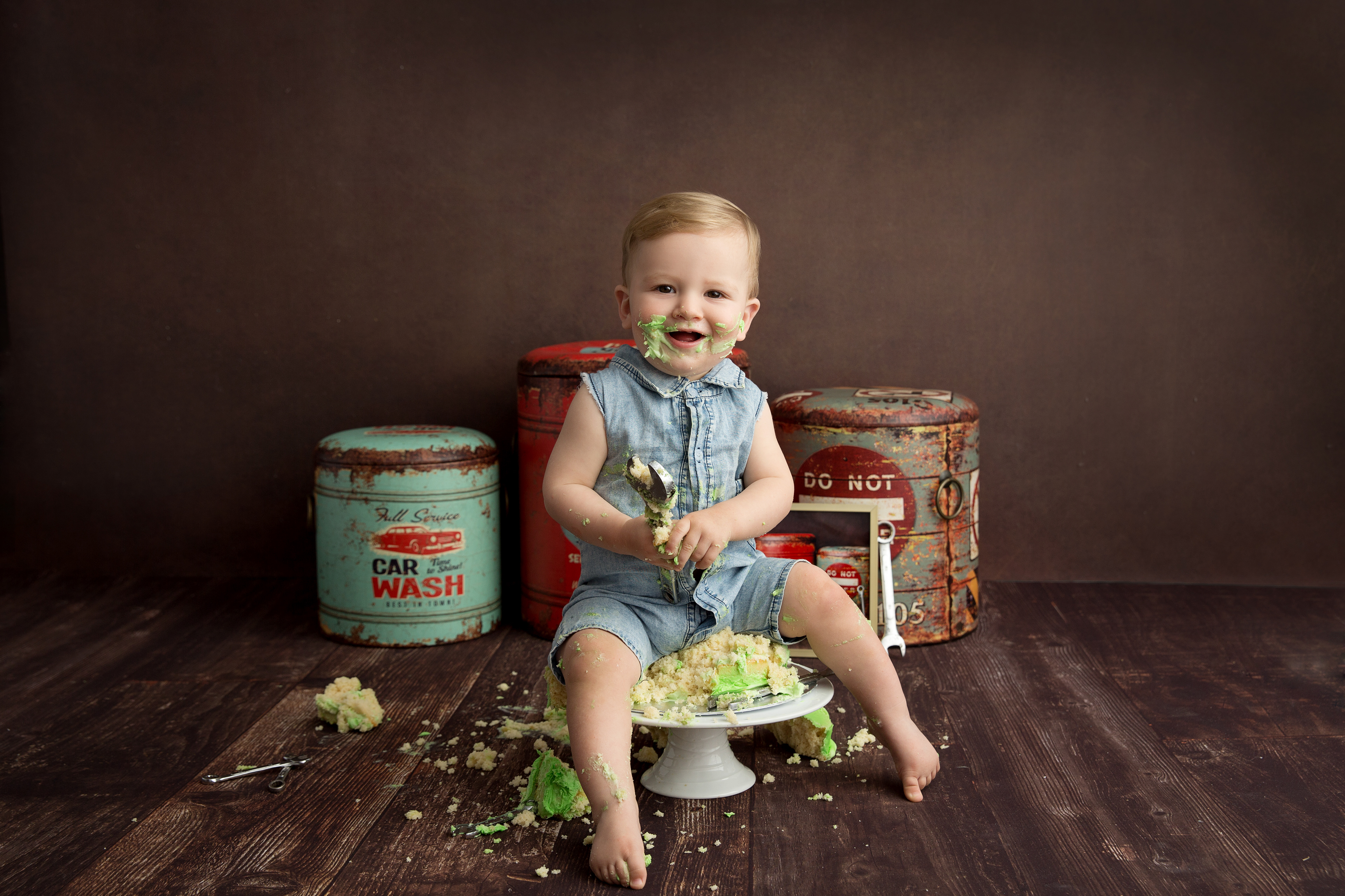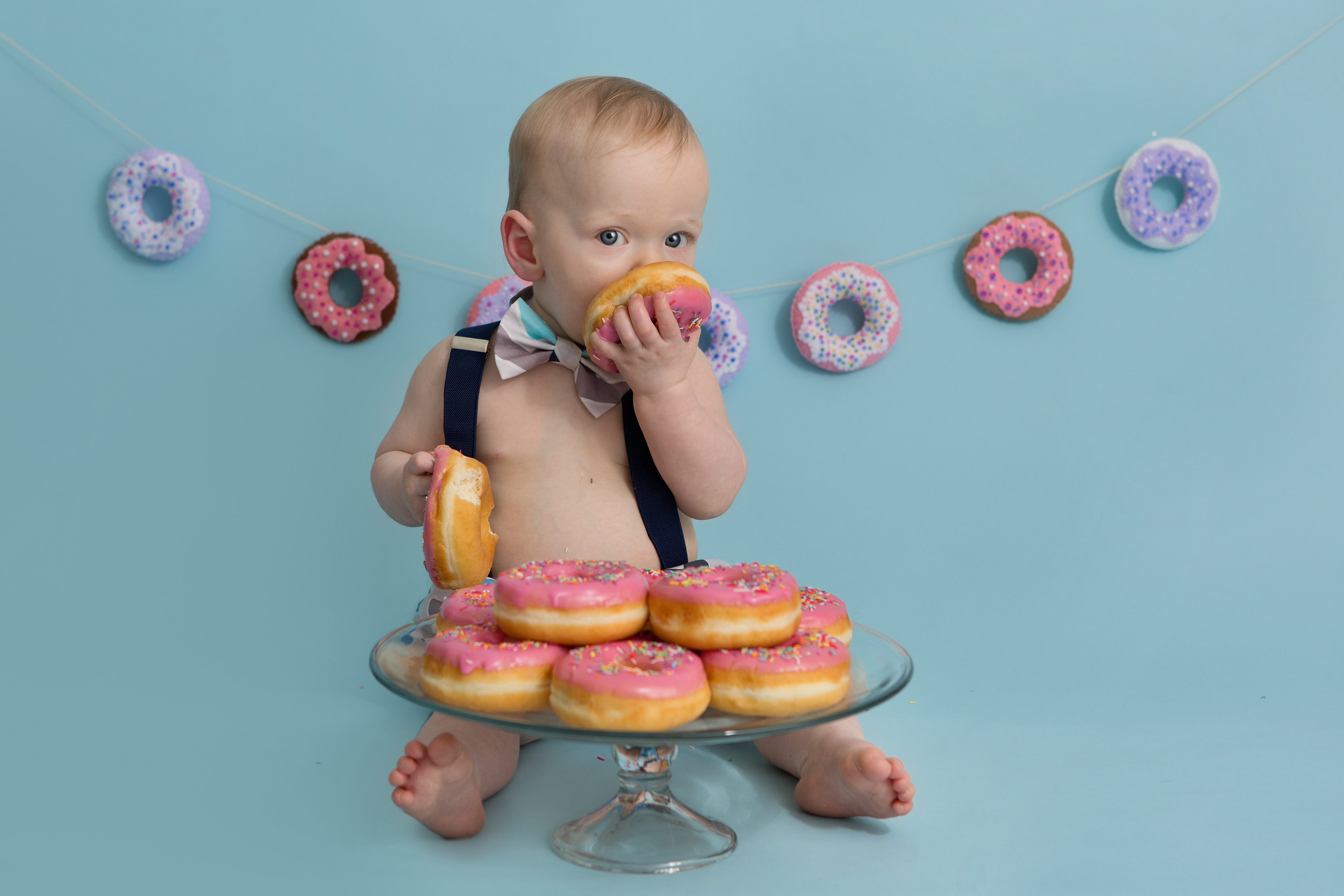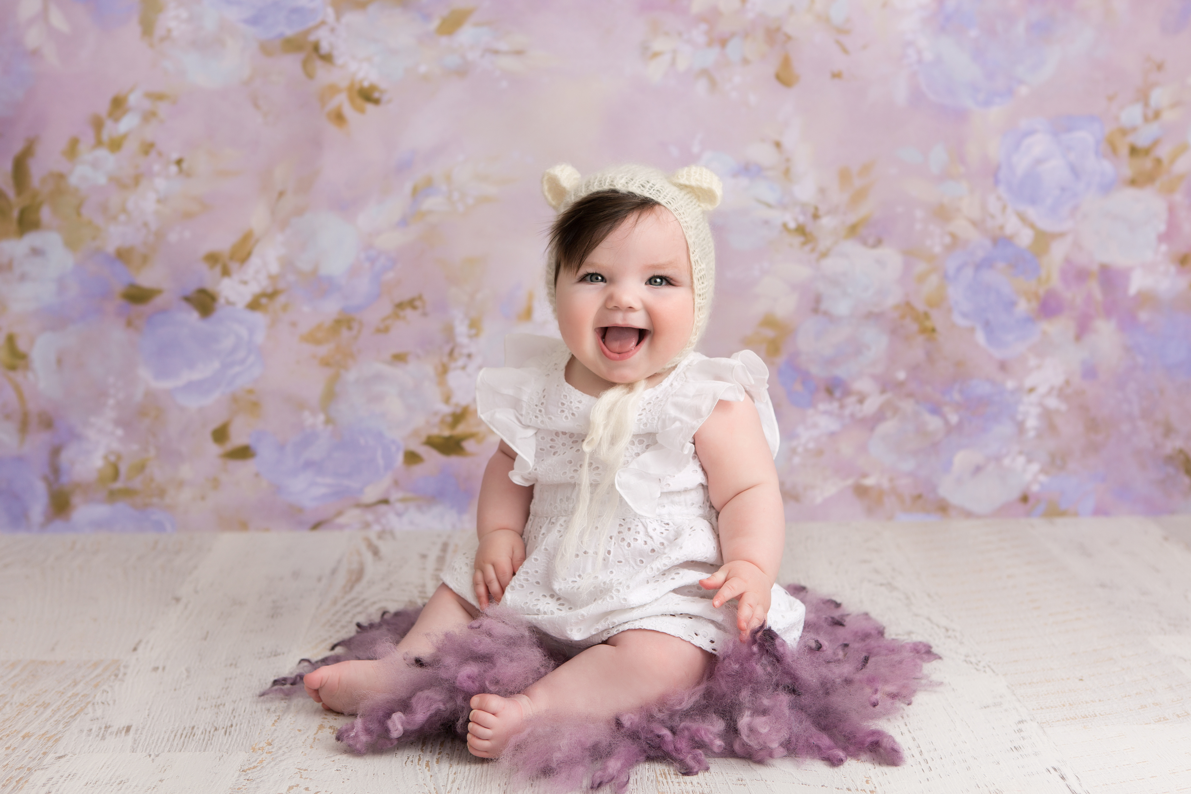 So much changes in that first year! Sitter age (6-9 months) is a perfect time for smiles and joy. 1 year Birthday milestone sessions are adorable, just more hectic as they are now crawling or walking! That is why the cake and bath are awesome distractions and so much fun. Family/sibling poses included!