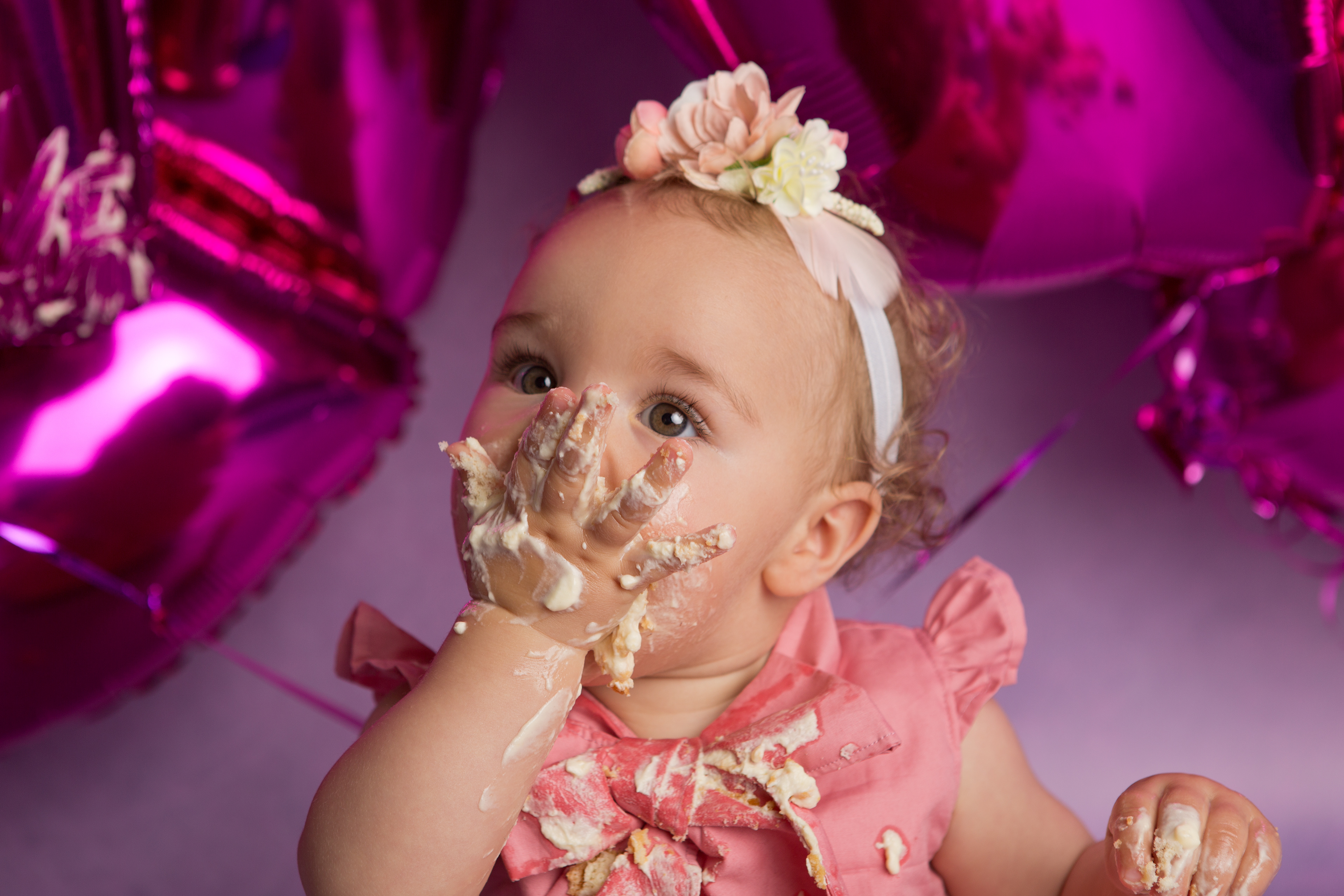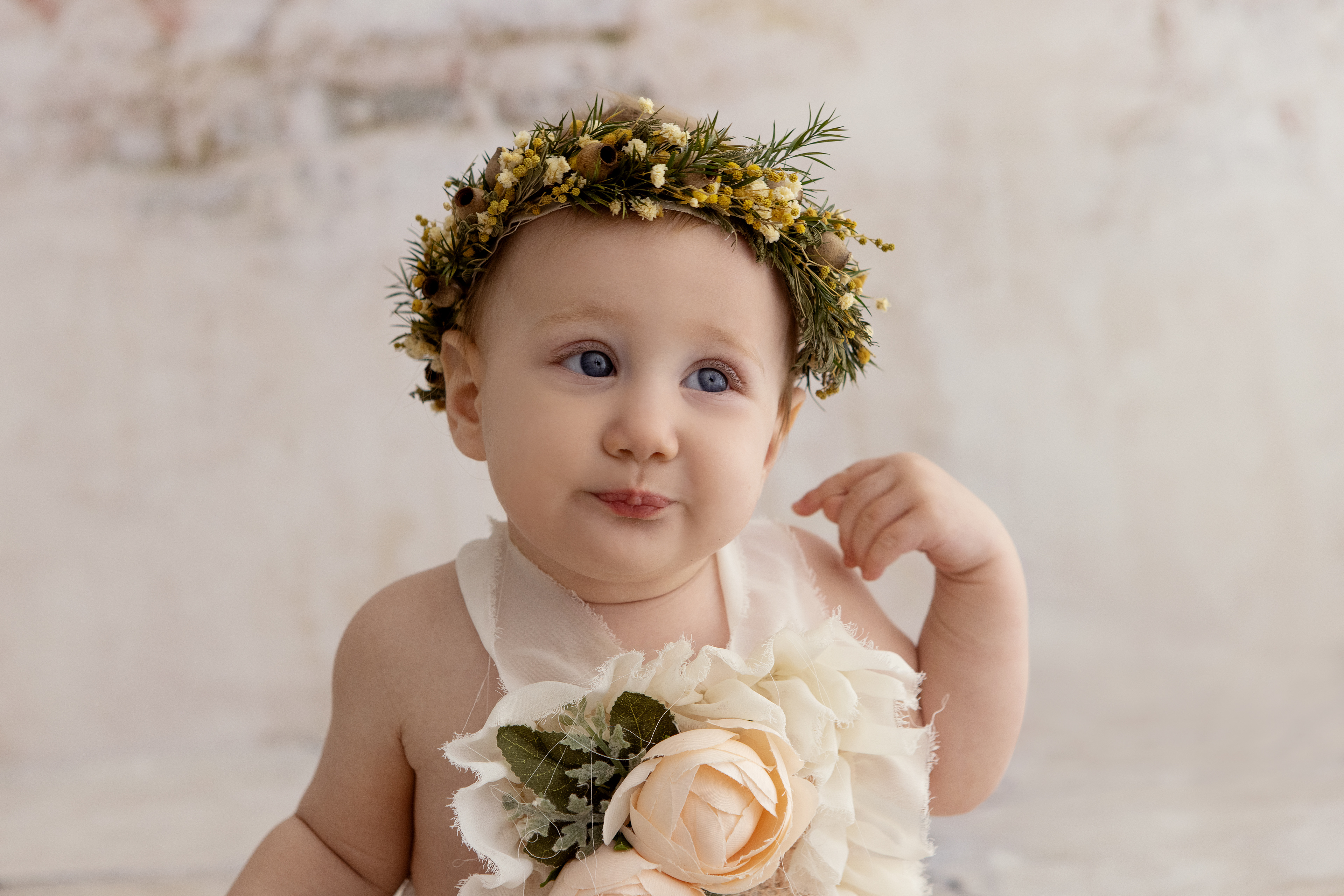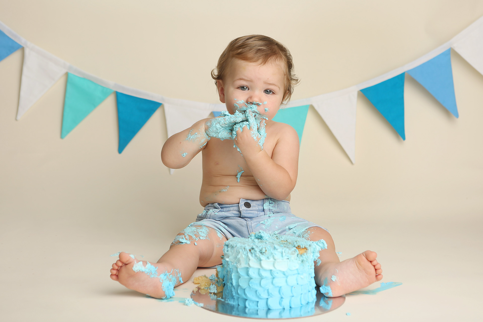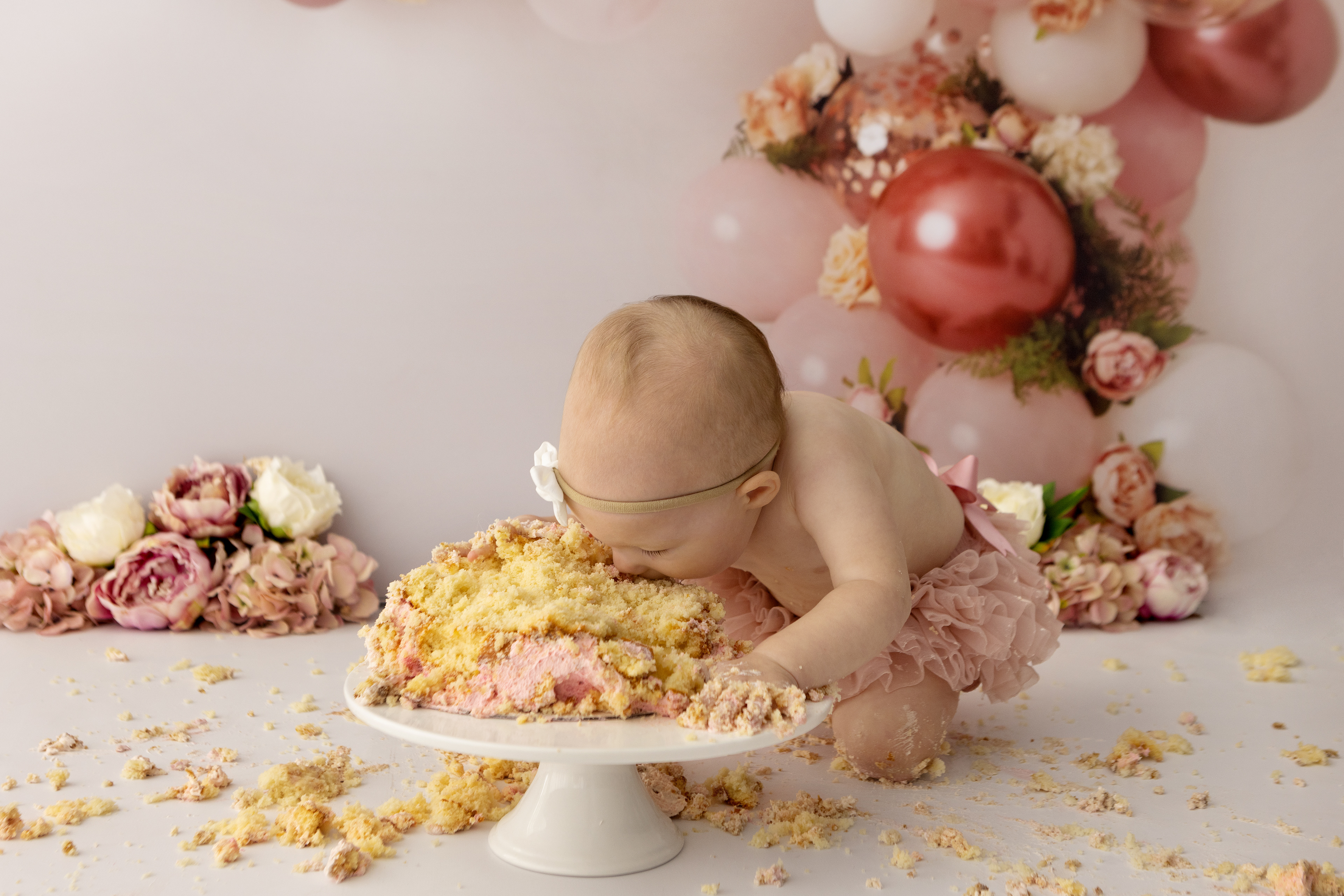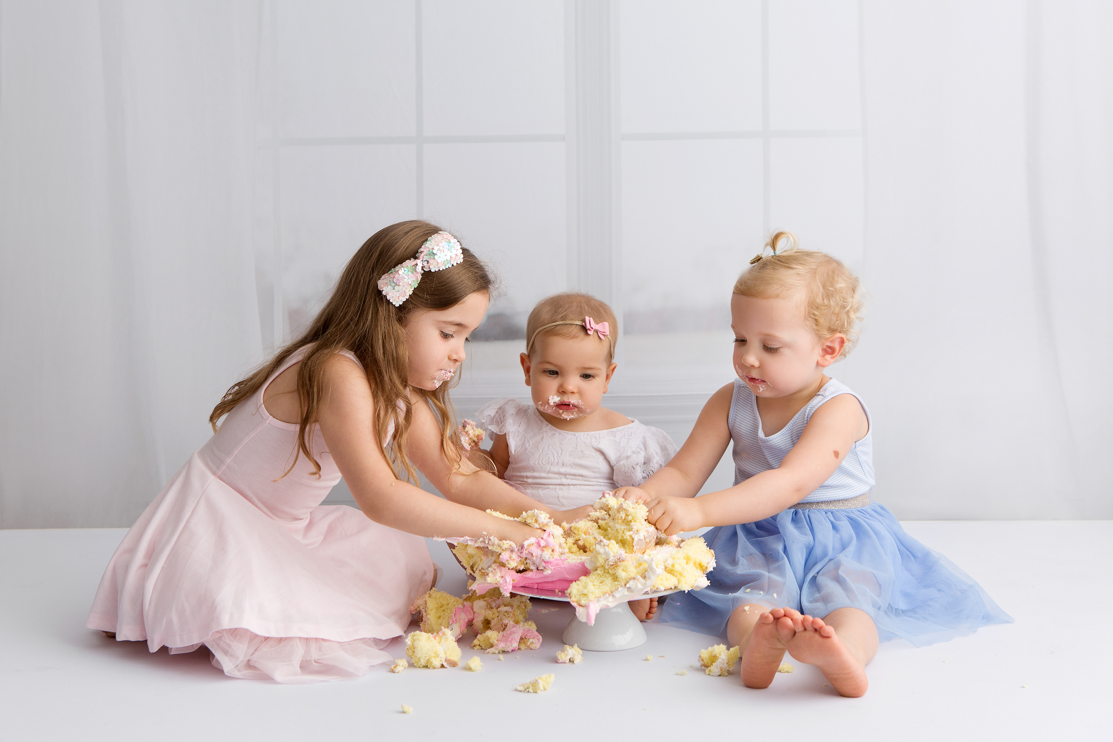 So much changes in that first year! Sitter age (6-9 months) is a perfect time for smiles and joy. 1 year Birthday milestone sessions are adorable, just more hectic as they are now crawling or walking! That is why the cake and bath are awesome distractions and so much fun. Family/sibling poses included!