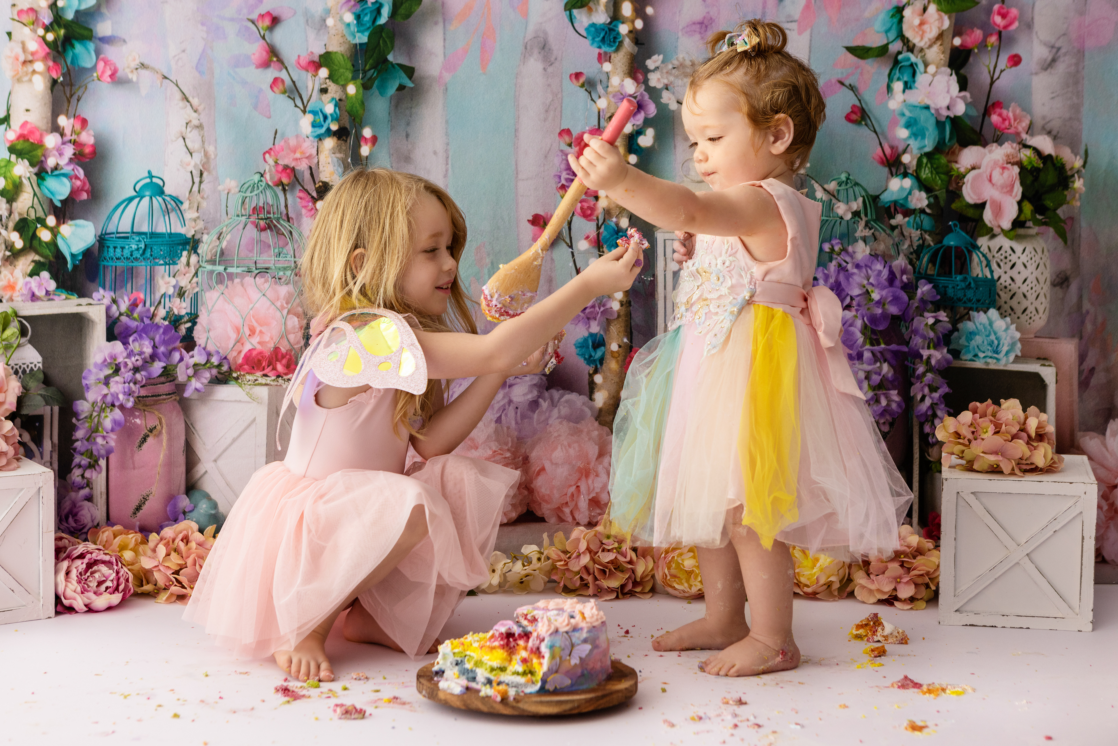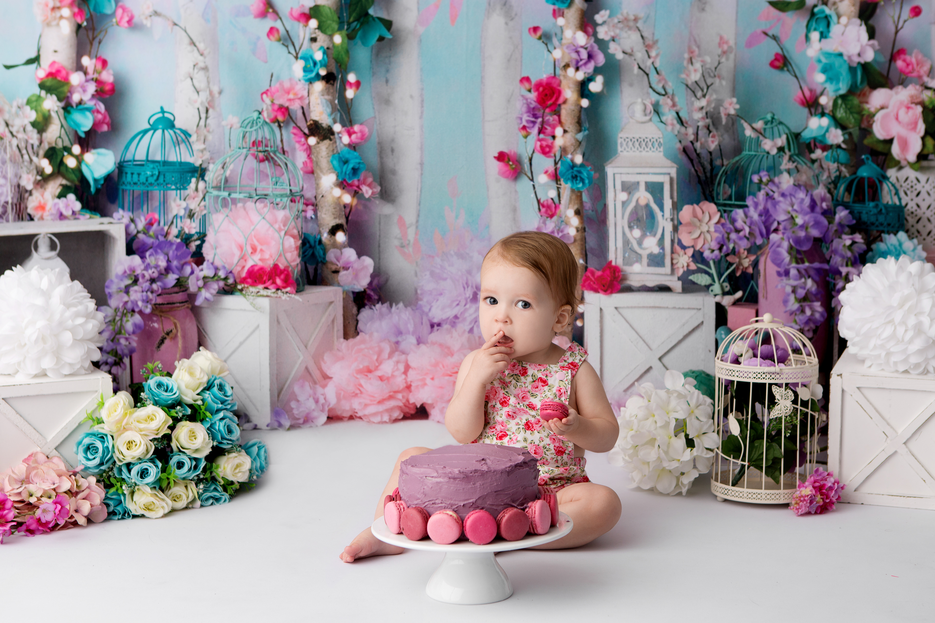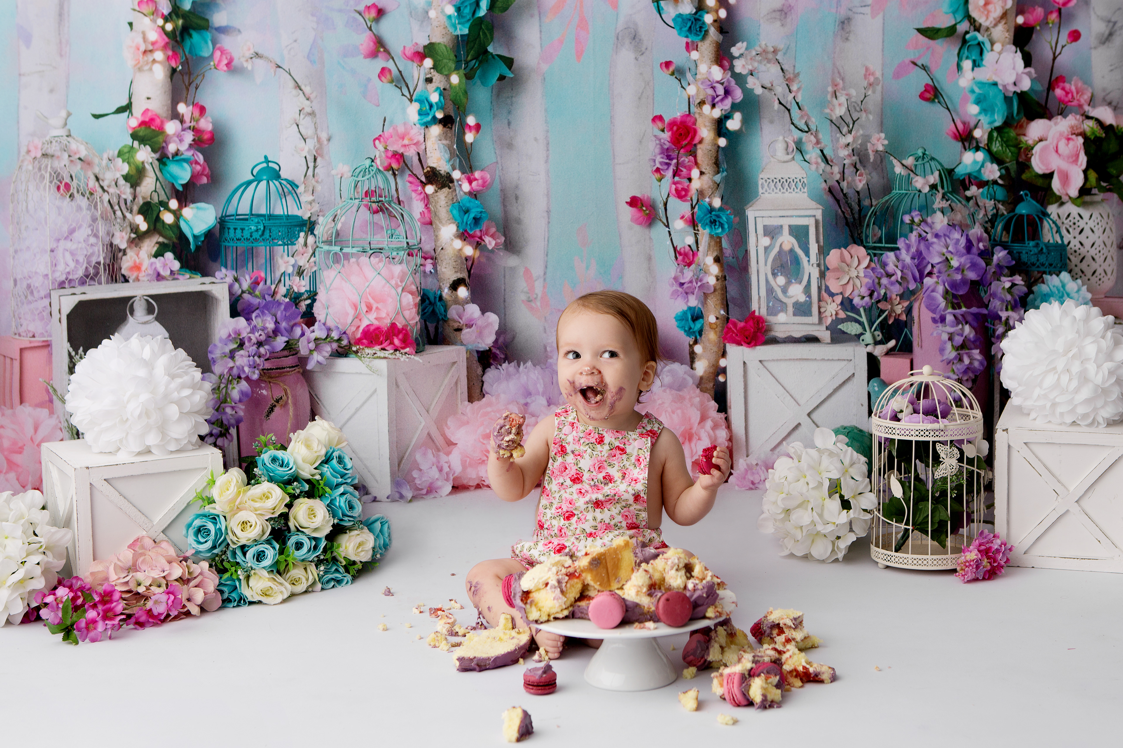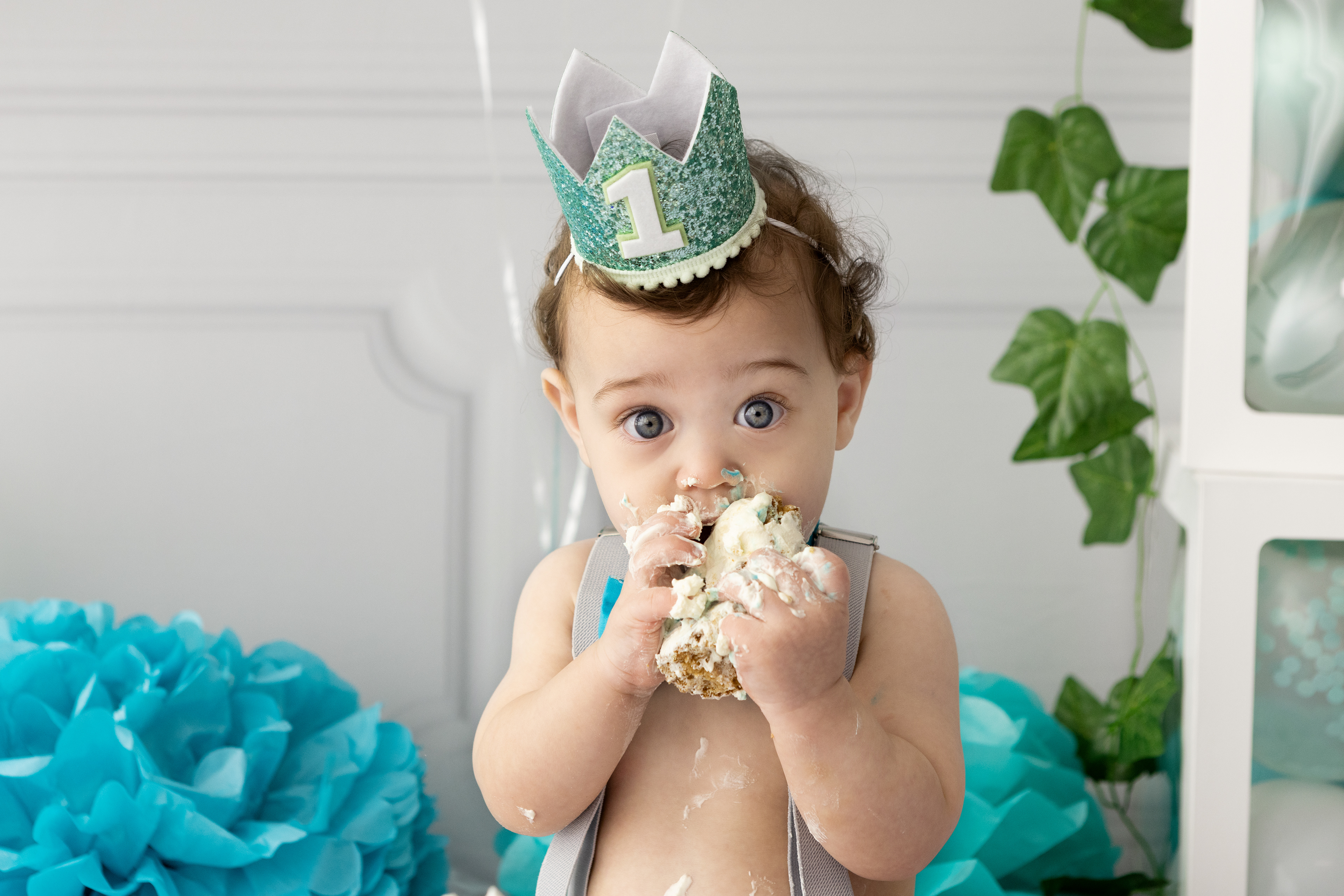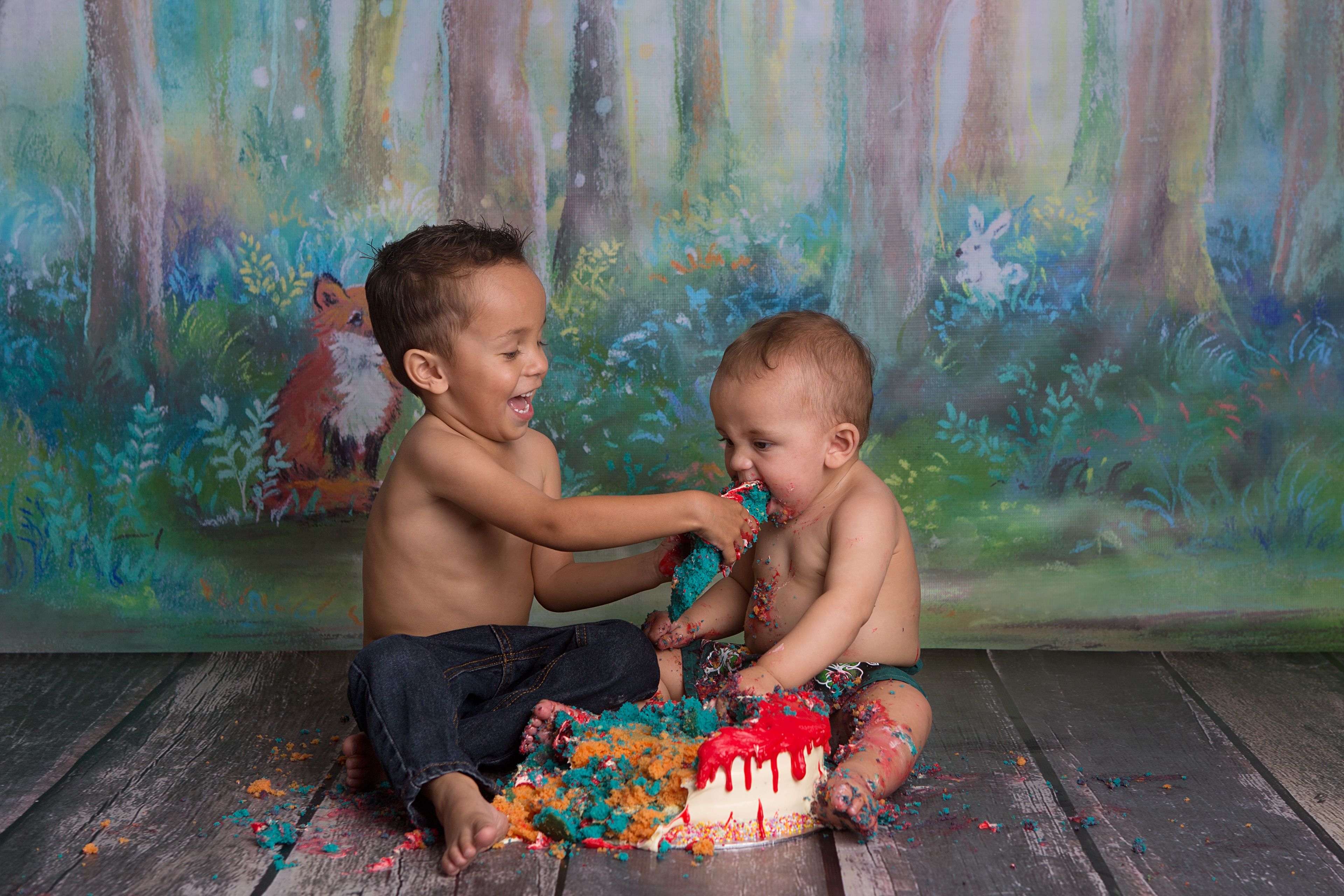 So much changes in that first year! Sitter age (6-9 months) is a perfect time for smiles and joy. 1 year Birthday milestone sessions are adorable, just more hectic as they are now crawling or walking! That is why the cake and bath are awesome distractions and so much fun. Family/sibling poses included!
